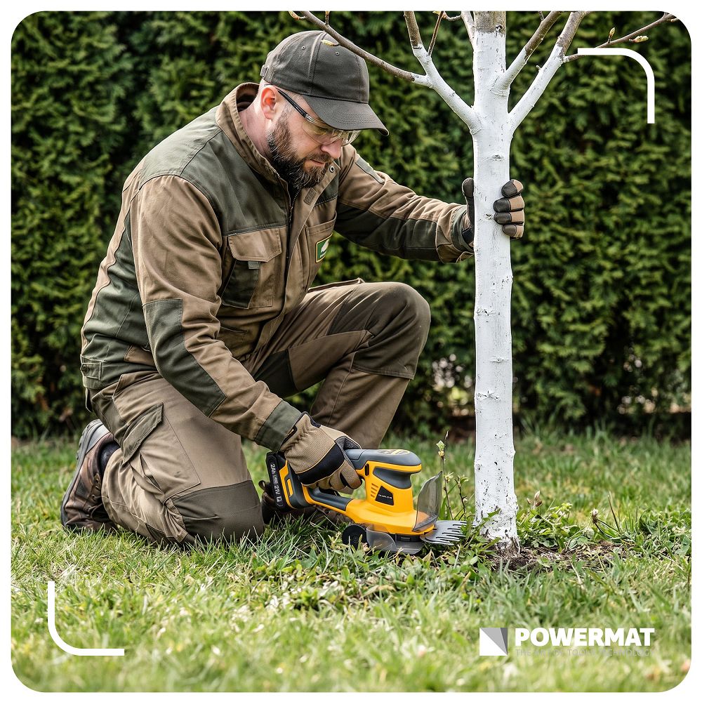 Akumulatorske škarje za travo in grmičevje, 21 V | PM-ANTK-21VM so praktično orodje za natančno rezanje robov trate, žive meje in majhnega grmovja. Zahvaljujoč 21 V napajanju delate brez kabla, prosto in udobno. Pridobite nadzor nad podrobnostmi na vrtu in hiter, raven rez brez večjega napora. Kapaciteta 2 Ah zagotavlja praktičen čas delovanja za rutinska vzdrževalna dela, dve bateriji v kompletu pa zagotavljata neprekinjeno delovanje brez prekinitev polnjenja.