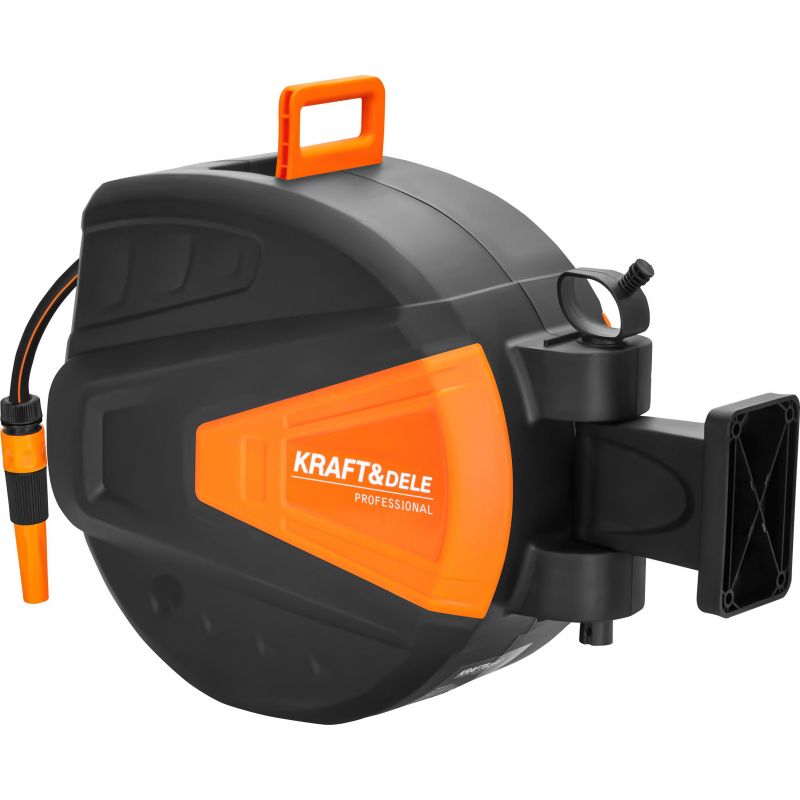 Avtomatski kolut za cev, 30 m + 2 m, 1/2″ | KD2153 je funkcionalen avtomatski kolut, zasnovan za priročno in pregledno uporabo na vrtu. Sistem samodejnega navijanja omogoča hitro shranjevanje cevi brez zapletanja in pregibanja, kar znatno poveča udobje vsakodnevnega dela. Ta model je mogoče namestiti na steno, kar prihrani prostor in ohranja red na vašem vrtu ali v garaži. Poleg tega je opremljen z ročajem za enostavno prenašanje koluta. Zahvaljujoč trdni konstrukciji in trpežnemu PVC materialu je primeren za redno uporabo.