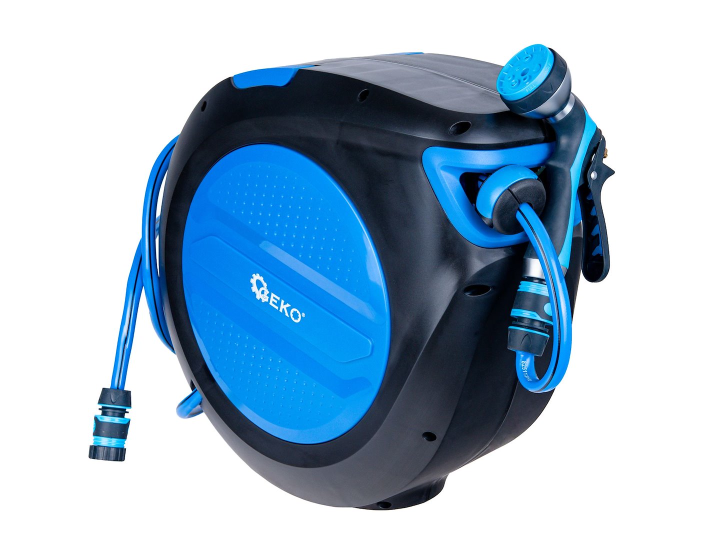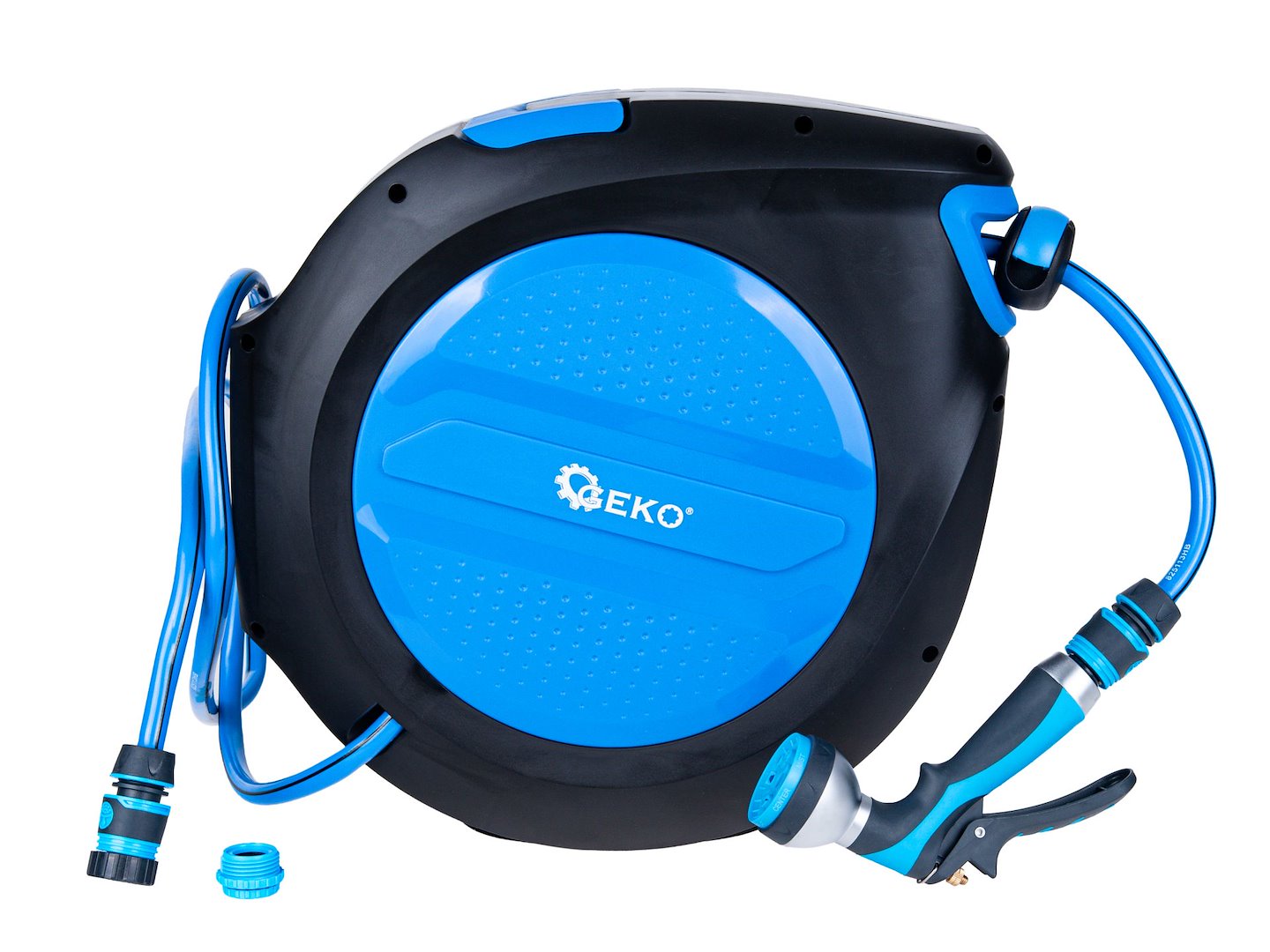 Kompaktno ohišje z dimenzijami 43 × 44 × 22 cm ščiti cev pred pregibanjem in UV-sevanjem, priložena kovinska pištola s 7 funkcijami pa omogoča nastavitev pretoka vode za zalivanje, pranje ali splakovanje. To je rešitev za tiste, ki se po vsakem zalivanju ne želijo ukvarjati z zapleteno cevjo ob steno hiše.