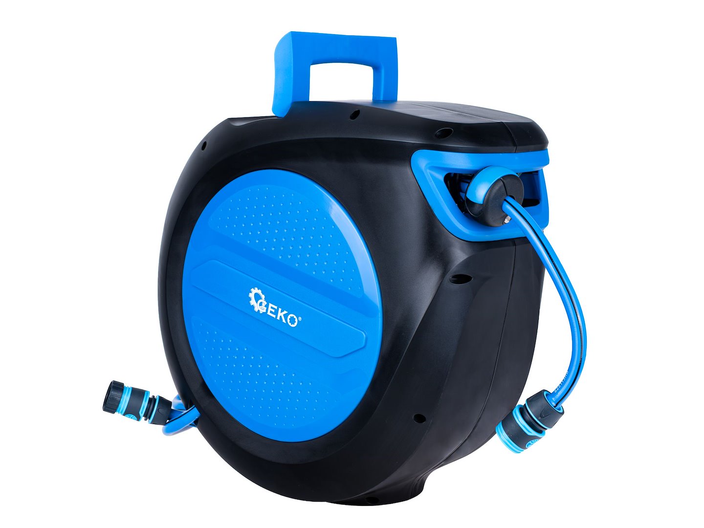 Avtomatski kolut za cev SKY-LINE, 30 m, 1/2″ | GEKO omogoča priročno zalivanje in zaradi samodejnega navijanja ohranja stvari urejene in brez zapletanja. Avtomatski stenski kolut za cev SKY-LINE z vrtno cevjo 1/2″ dolžine 30 m, opremljen z zaklepnim sistemom in samodejnim navijanjem po močnejšem potegu, 180° vrtljivo strukturo in 1,9 m dolgo priključno cevjo.