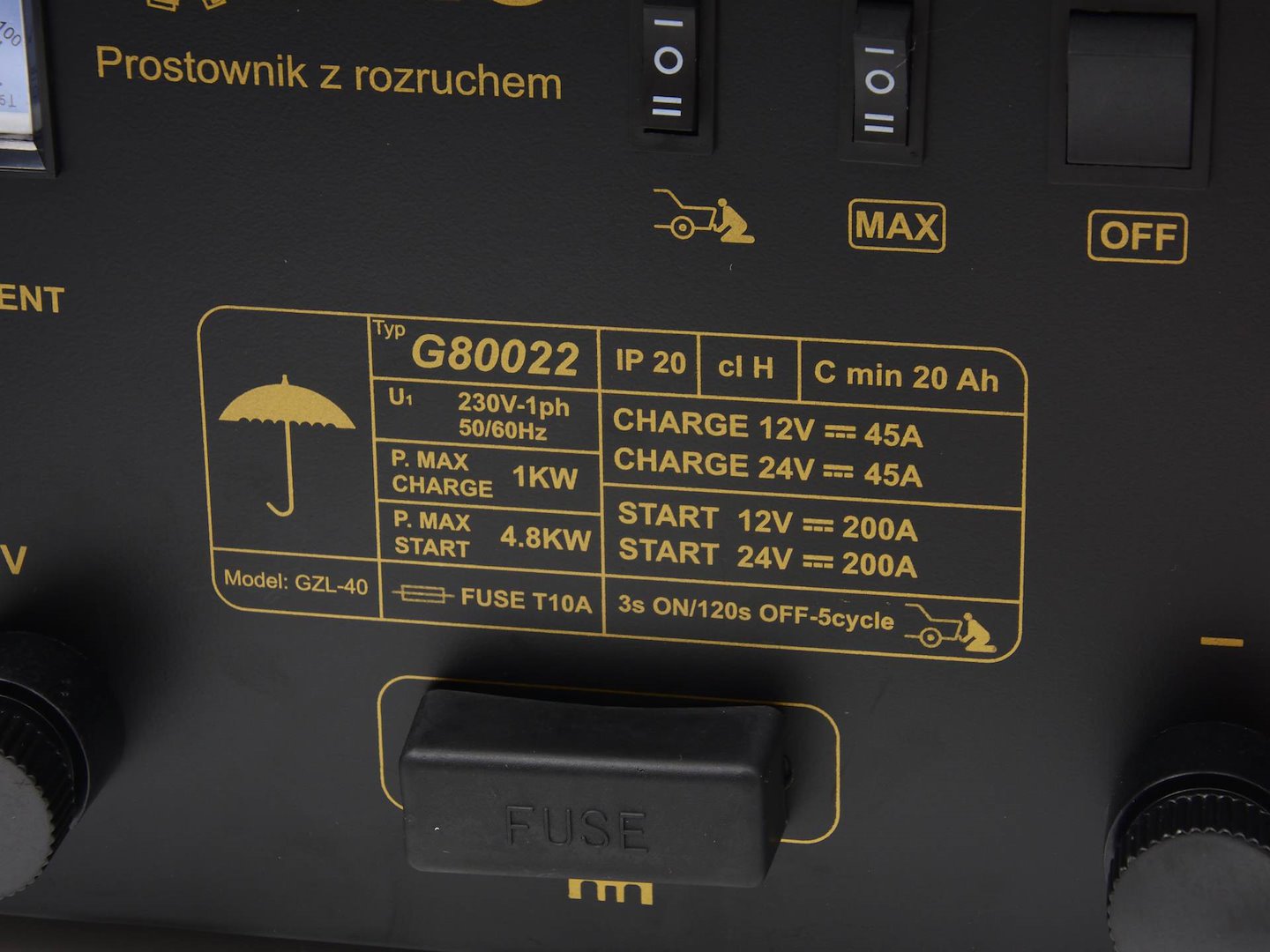 Ima funkcijo daljinskega zagona za bencinske in dizelske motorje. Polnilnik vključuje termično stikalo, ki samodejno izklopi sistem, ko se transformator pregreje. Odlično bo služil za zagon vozil z bencinskimi in dizelskimi motorji, kot so tovornjaki, kombiji ali kmetijska mehanizacija.