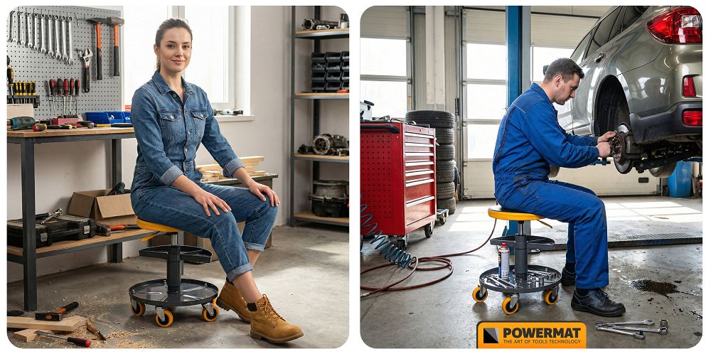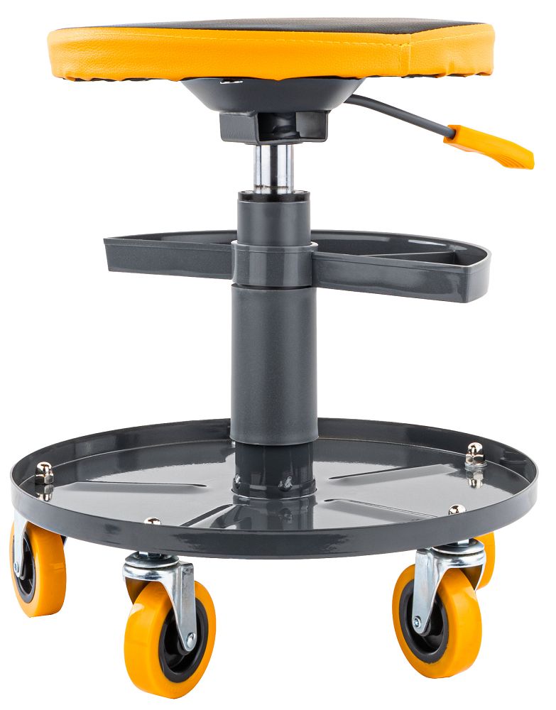 Sedež ima dimenzije 35,5 × 40 × 40 cm, zaradi česar ga je enostavno postaviti na delovno mesto in priročno shraniti tudi v manjši garaži. Robustno konstrukcijo stola je proizvajalec zasnoval za zahtevno delo in zagotavlja nosilnost do 150 kg. To zagotavlja stabilnost in varno uporabo tako v domačih garažah kot v profesionalnih delavnicah.