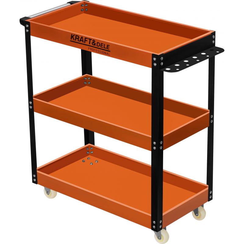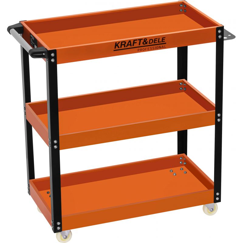 Delavniški voziček, 3 police | KD1092 je robusten in funkcionalen delavniški voziček, zasnovan z mislijo na priročno organizacijo orodja in pripomočkov na delovnem mestu. Izkazal se bo v delavnici, garaži, servisu in mobilnem delu, kjer je pomemben hiter dostop do opreme. Voziček je opremljen s tremi prostornimi policami z dvignjenimi robovi, ki preprečujejo zdrs orodja med premikanjem.