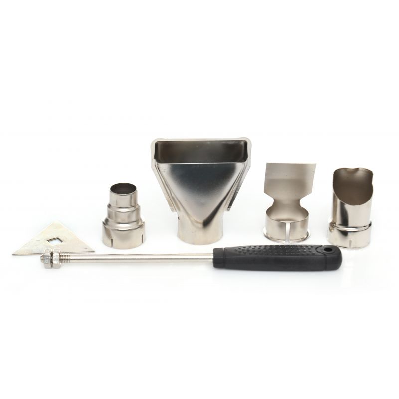 Ponuja dva načina pretoka zraka (300 in 500 l/min) in dve temperaturni stopnji (približno 400 °C in 600 °C) – zahvaljujoč temu lahko ne le odstranjuje barvo in lak, temveč tudi suši površine, oblikuje plastiko, dela s PVC cevmi ali namešča termoskrčljive materiale. Paket vsebuje štiri nastavke in trikotno strgalo, ki razširijo funkcionalnost naprave pri delu v različnih situacijah.