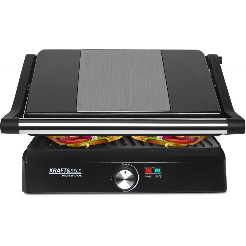 Ta model odlikuje funkcionalna zasnova in možnost prilagajanja zgornje plošče velikosti popečene hrane, kar preprečuje sploščitev hrane in omogoča enakomerno popečenje tankih toastov in debelejših kosov mesa. Druga prednost je možnost razstavljanja žara – klasično zložen, v položaju 90° in raven do 180°, kar podvoji površino za peko in zagotavlja večjo svobodo pri pripravi večjih količin hrane.