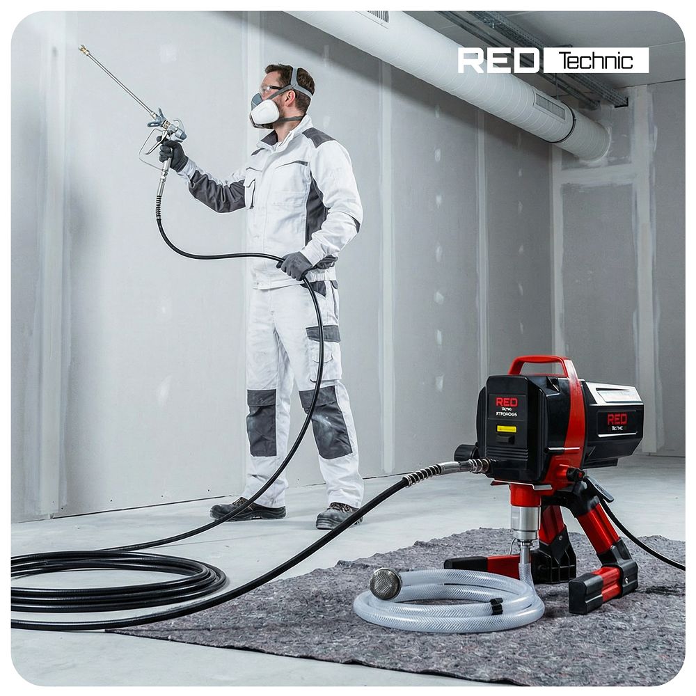 Enota za barvanje RTPDM0166, 1200 W | RED TECHNIC zagotavlja enakomeren in učinkovit nanos barve na stene in druge površine. Naprava se lahko uporablja za barvanje notranjih in zunanjih sten, fasad, stropov in tal, pa tudi za temeljne premaze, impregnacijo in protikorozijsko zaščito. Podpira emulzijske, akrilne in lateks barve, lake in lazure, zaradi česar je primerna za različne vrste projektov. Dobite enakomeren premaz brez lis in manjšo porabo barve na velikih površinah.