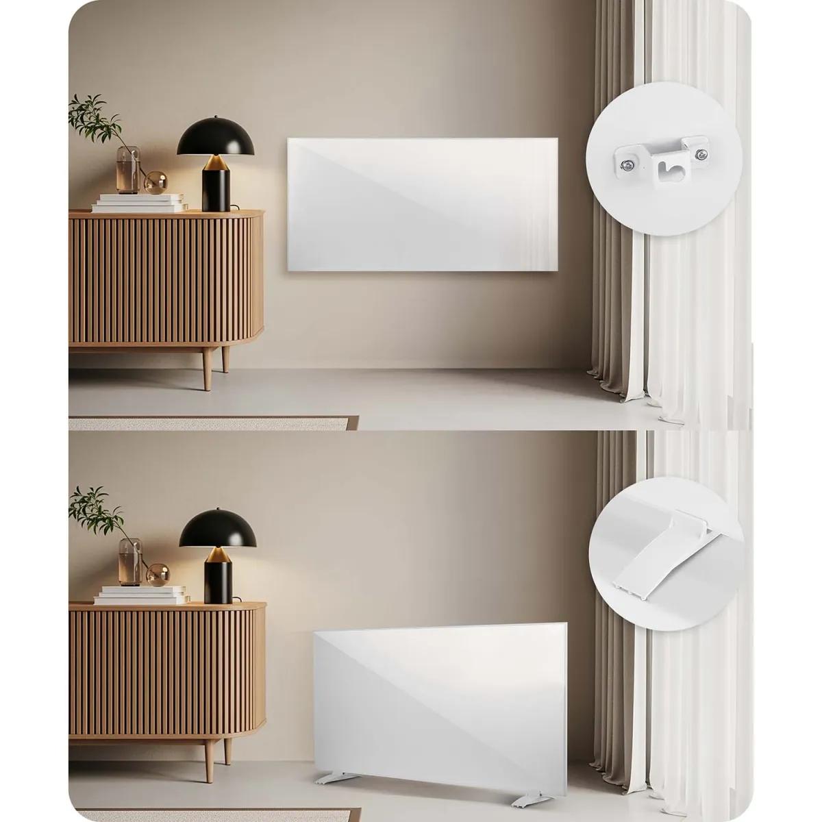 Zasnovan je kot 3-v-1 – lahko se namesti na steno, na strop ali samostojno s pomočjo priloženih nog, s čimer se prilagodi različnim vrstam notranjosti. Materialne plasti vključujejo PET, PP, aluminij in jeklo. Panel ima stopnjo zaščite IPX4, ki zagotavlja vodoodpornost – primeren je tudi za prostore z višjo vlažnostjo (npr. kopalnice), seveda ob upoštevanju varnostnih predpisov. Dolžina napajalnega kabla je 1,5 m.