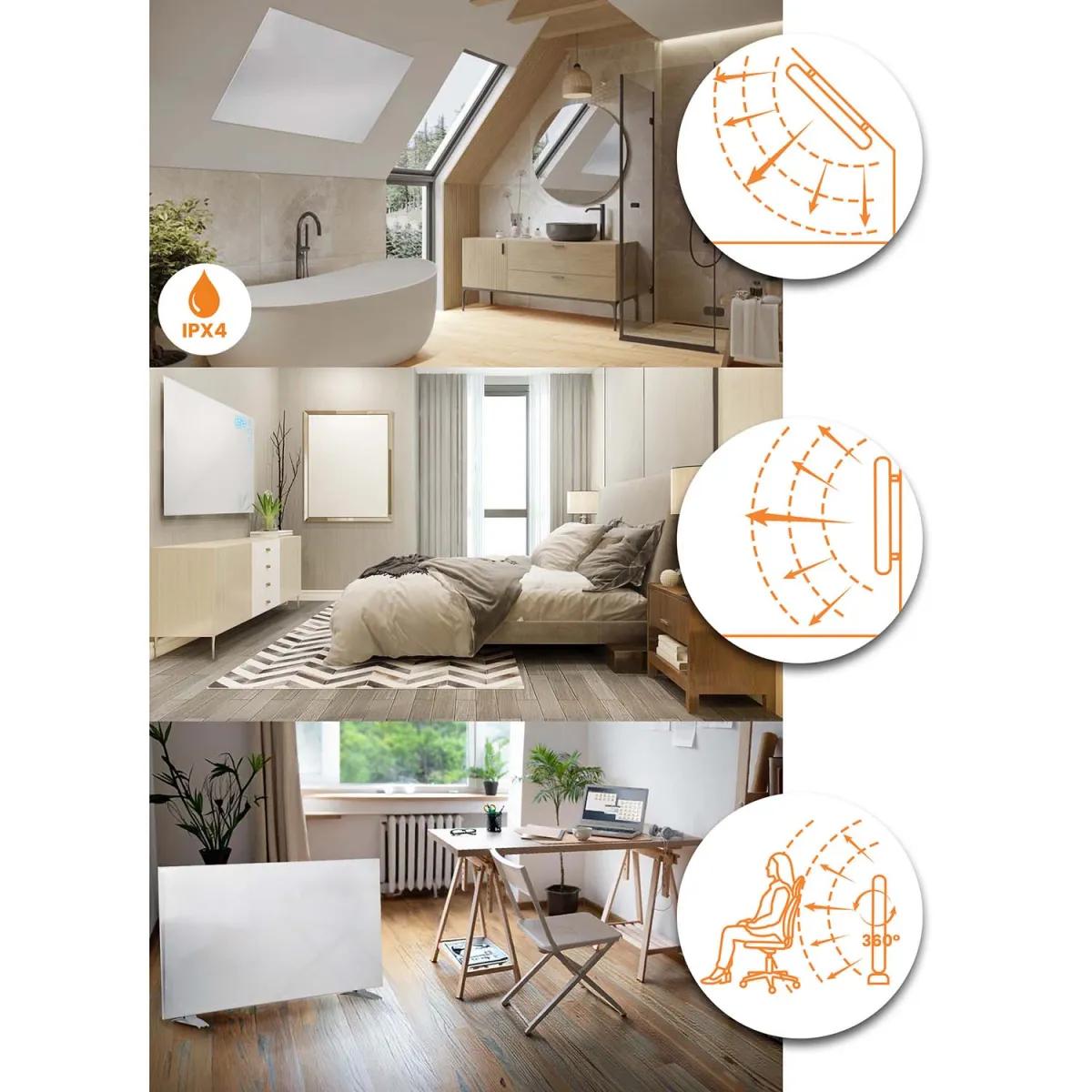 Odlikuje ga dvojna zaščita pred pregrevanjem in vgrajen temperaturni senzor za večjo varnost med uporabo. Panel uporablja tehnologijo ogljikovih kristalov (daljni infrardeči žarki), zahvaljujoč kateri hitro in učinkovito ogreva prostor, ne da bi izsušil zrak, in zagotavlja občutek toplote, podoben sončni svetlobi.