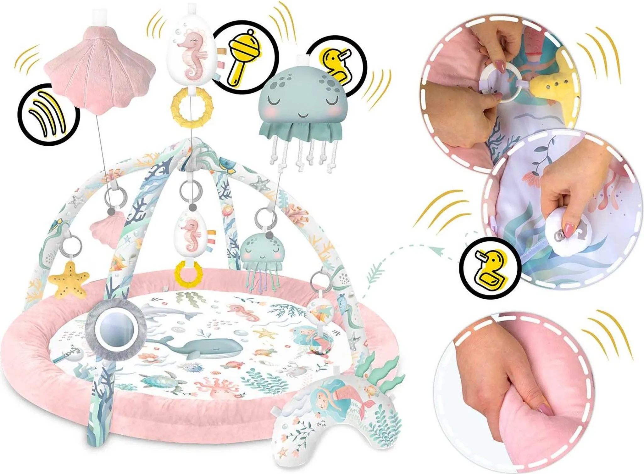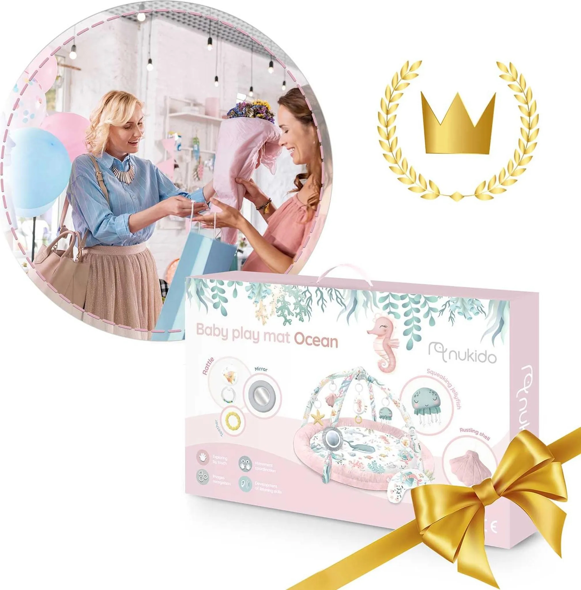 Interaktivna učna podloga, ocean, roza | Nukido ponuja zabaven in varen prostor za igro in razvoj vašega dojenčka. Podpira razvoj dojenčka že od prvih mesecev življenja in mu hkrati zagotavlja prijeten, mehak in varen prostor za igro, počitek in odkrivanje novih oblik, zvokov in barv.