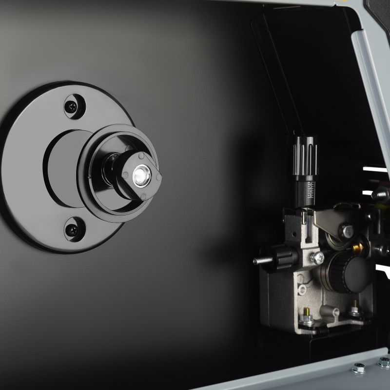 Model ponuja funkcijo SYN MIG s sinergijskim izborom parametrov, ki samodejno prilagodi varjenje in olajša delo tudi manj izkušenim uporabnikom. Način FLUX omogoča varjenje s samozaščitno žico brez zaščitnega plina, široke nastavitve pa omogočajo natančno prilagajanje delovanja. Udobje povečujejo funkcije odžiganja, SPOT s časovnim nadzorom, izbira načina 2T/4T/SPT in natančen podajalnik žice z 2 valjčkoma.