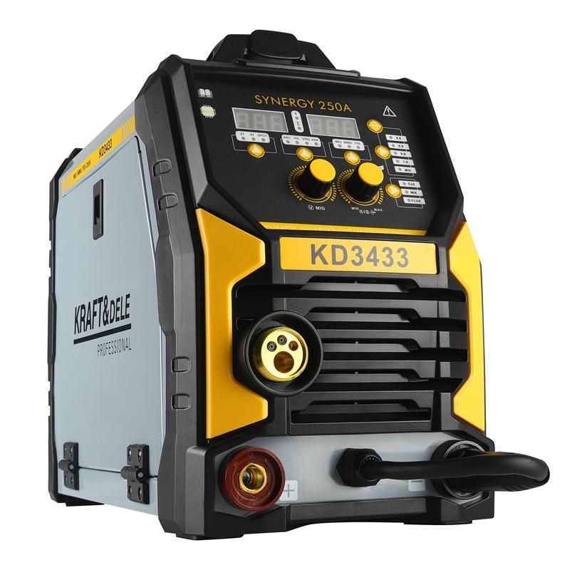 Inverterski varilni aparat, MIG Flux MMA TigLift SYNERGIA, 250A | KD3433 ponuja prilagodljivo rešitev za varjenje različnih materialov. Gre za sodobno večnamensko napravo, ki jo je mogoče uspešno uporabljati tako v domačih delavnicah kot v profesionalnih obratih. Zahvaljujoč podpori metod MIG/MAG, MMA in Lift-TIG omogoča širok spekter varilnih del, vključno s spajkanjem tankih pocinkanih pločevin debeline do 3 mm.