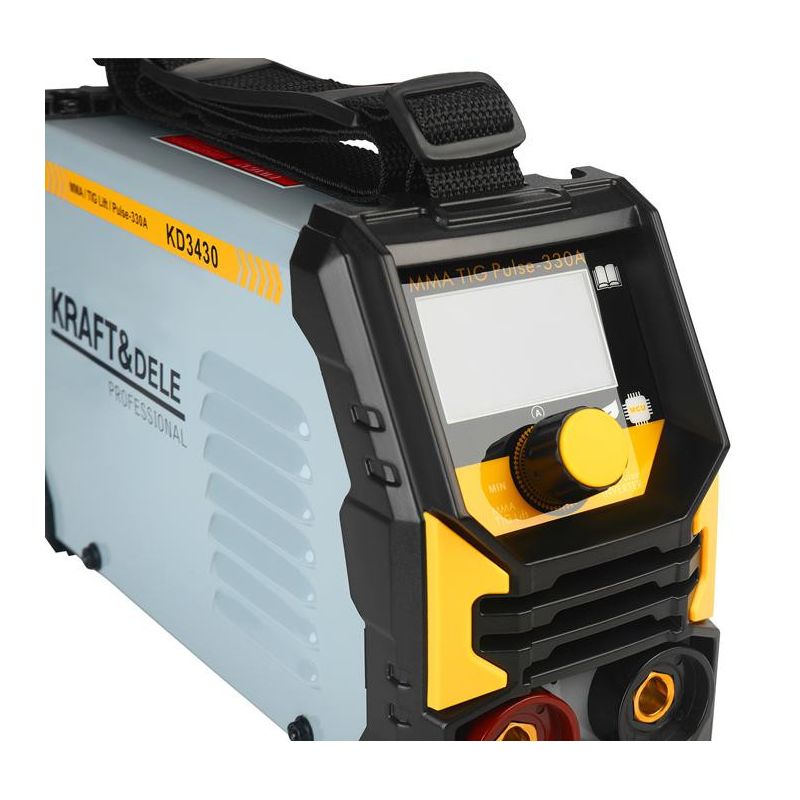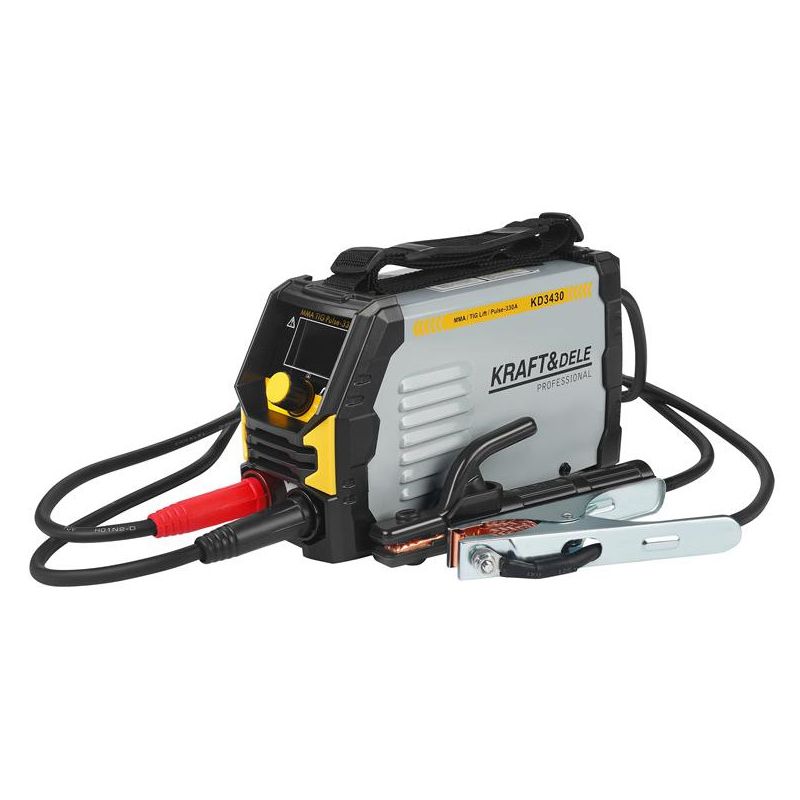 Inverterski varilnik, MMA TigLift Pulse, 330A | KD3430 ponuja visoko varilno zmogljivost, stabilen oblok in širok spekter uporabe. Je univerzalna naprava, zasnovana za MMA, Tig Lift in pulzno varjenje. Zaradi kompaktnih dimenzij in lahke zasnove je idealna tako za profesionalne kot za hobi varilce. Naprava zagotavlja stabilno delovanje in visokokakovostne varilne spoje v različnih aplikacijah. Deluje pri standardni napetosti 230 V 50 Hz in ponuja varilni razpon od 20 do 330 A. Podpira elektrode s premerom od 1,6 do 3,2 mm in ima izkoristek 60 %. Izolacijski razred F in stopnja zaščite IP21S zagotavljata varno uporabo tudi v zahtevnejših delovnih pogojih.