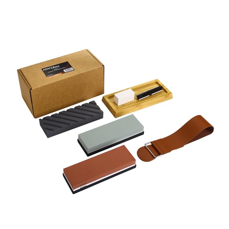 - Komplet vsebuje kamne različnih granulacij za začetno in končno ostrenje