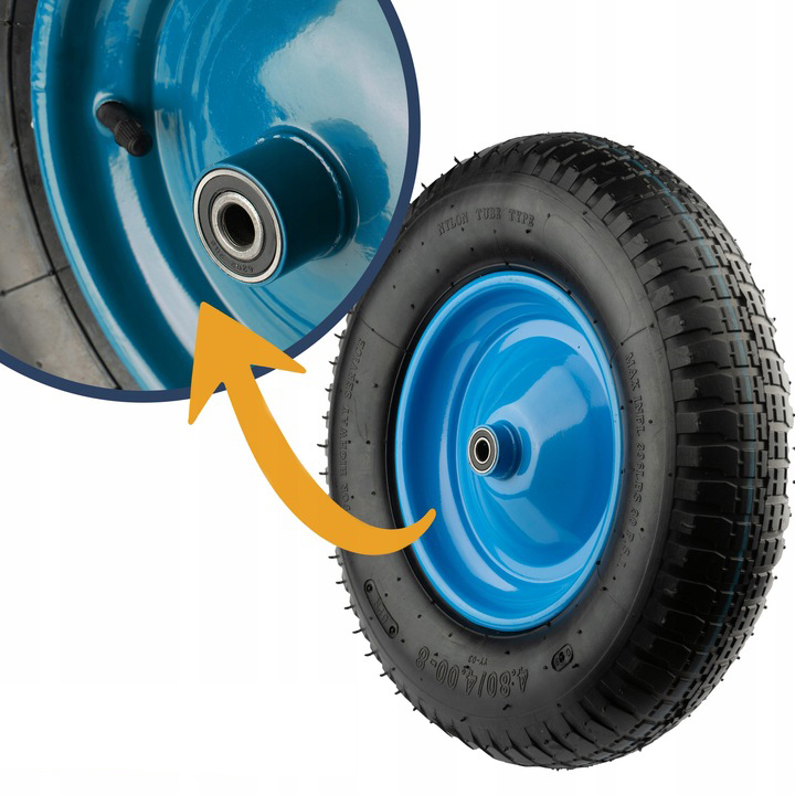 Dvojni kroglični ležaji zagotavljajo gladko gibanje in stabilnost, tako da lahko enostavno in varno prevažate tudi težke tovore. 6 plasti v pnevmatiki pa zagotavlja dodatno zaščito in trdnost. Z največjo nosilnostjo 250 kg in največjim tlakom 2,1 bara je to kolo idealno za različne namene, od gradbenih del do čiščenja vrta.