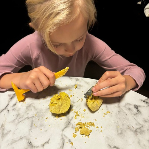 Jajca so bila zasnovana z mislijo na otroke, zato ste lahko prepričani, da bo vaš mali raziskovalec užival v zabavi, ne da bi ga skrbelo za zdravje in varnost. Kladivo prenese intenzivno odkrivanje, krtačka pa omogoča nežno čiščenje. Da bi se izognili nepotrebni umazaniji, jajce preprosto namočite v toplo vodo, kar bo zmanjšalo količino prahu. Komplet je bil preizkušen v skladu z evropskimi standardi, zato ste lahko prepričani, da je varen!