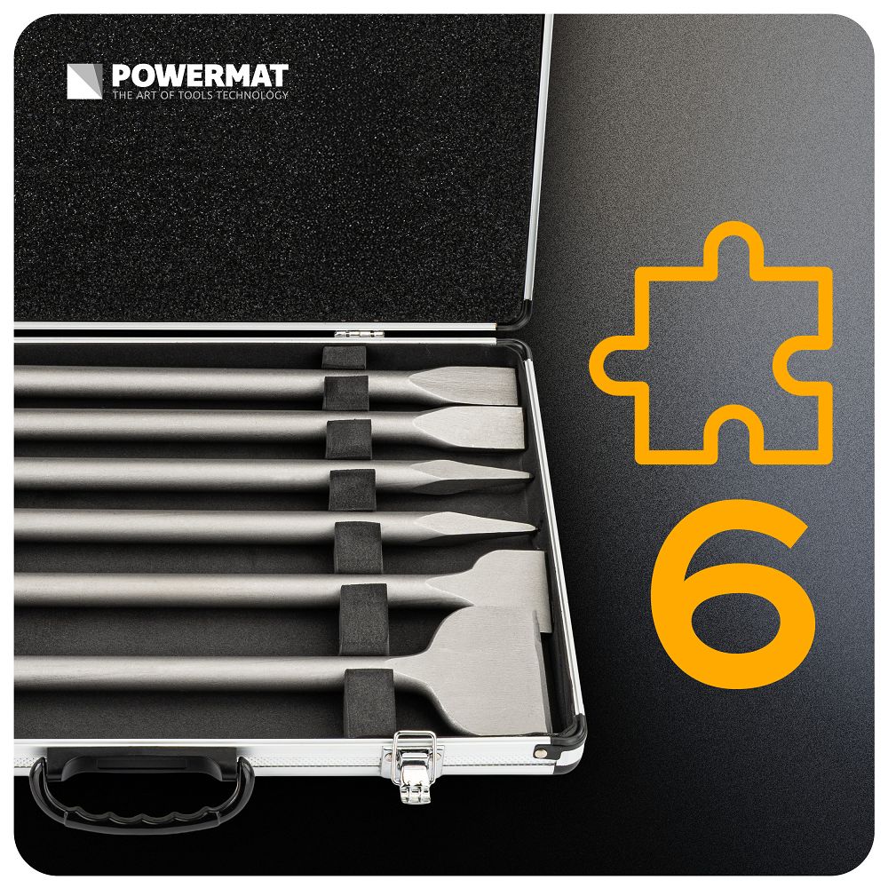 Komplet dlet, SDS MAX, 6 kosov | PM-ZD-6T je zasnovan za dletenje in oblikovanje betona in zida pri zahtevnejših gradbenih in rušitvenih delih. Dleta so izdelana iz visokokakovostnega jekla, obdelanega s sodobno tehnologijo. Ta material zagotavlja odpornost na deformacije med delovanjem. Orodja bodo tako zanesljivo služila tako v domači kot profesionalni uporabi. Priključek SDS Max zagotavlja stabilnost in učinkovit prenos udarne energije.