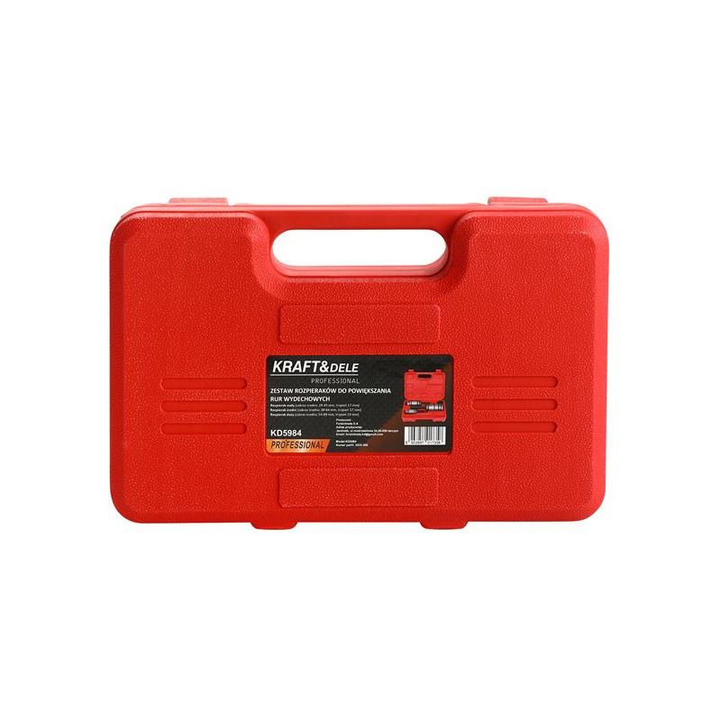 Komplet ekspanderjev, 3 kosi | KD5984 je zasnovan za širjenje koncev izpušnih cevi in prilagajanje njihovega premera pri nameščanju ali popravilu izpušnih sistemov. Omogoča hitro in natančno širjenje cevi brez potrebe po segrevanju ali varjenju. Idealen je za avtomehanične delavnice, servisne centre in domača popravila.