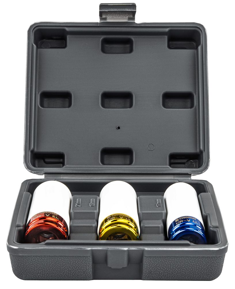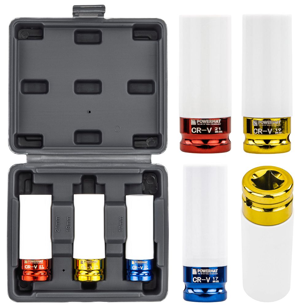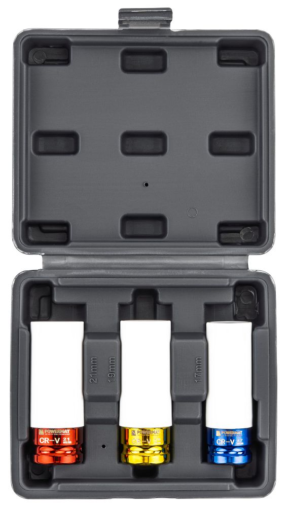 Komplet nasadnih ključev, 3 kosi | PM-ZNU-1721T je kompakten komplet nasadnih ključev, primeren za udarno delo v avtomehaničnih delavnicah in delavnicah. Komplet vsebuje tri nasadne ključe velikosti 17 mm, 19 mm in 21 mm, zato ustrezajo najpogostejšim vijakom v aluminijastih platiščih. Ta praktična rešitev vam omogoča hitro izbiro pravega orodja, ne da bi morali iskati dodatne komponente.
