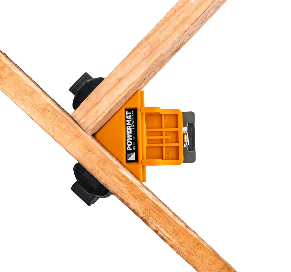 Kotne spone, 4 kos, 5-22 mm | PM-SNK-522T omogoča fiksiranje več vogalov hkrati, kar bistveno pohitri delo pri večjih mizarskih projektih. Objemka omogoča natančno vpenjanje elementov debeline od 5 do 22 mm, kar omogoča delo tako s tankimi ploščami kot tudi z masivnimi ploščami. Zahvaljujoč stabilni geometriji vodilnih tirnic ostaja obseg konstanten, kar zagotavlja ponovljivost in visoko natančnost nastavitve pri vsakem projektu.