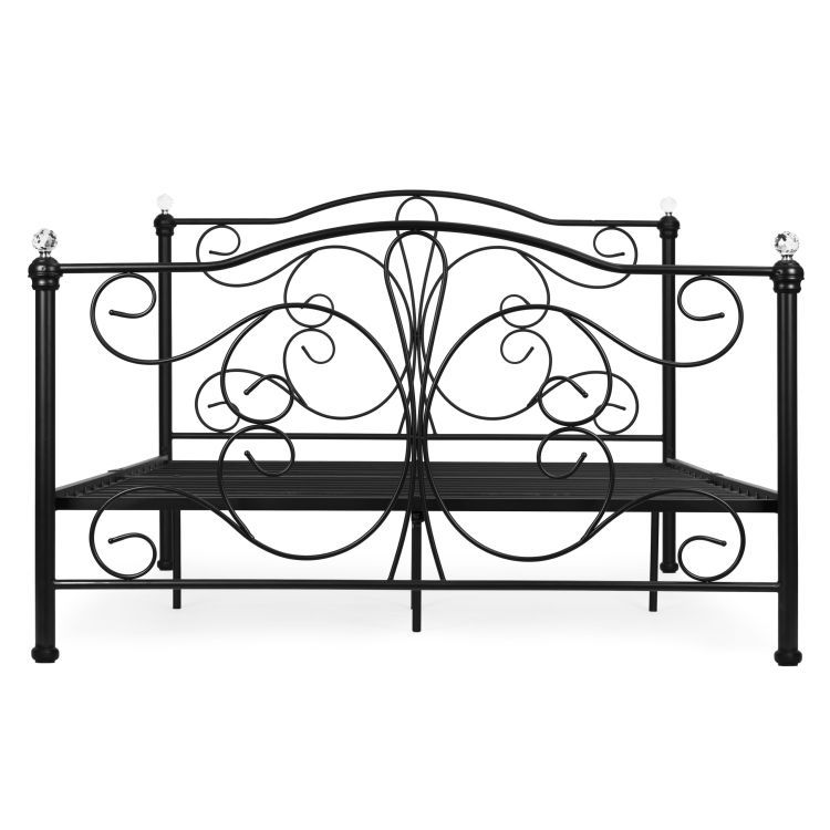 Kovinska postelja, 160x200cm, črn okvir | ModernHome je univerzalna rešitev, ki se odlično prilega različnim notranjim prostorom in jim daje sodoben pridih. Stabilna konstrukcija z vgrajenim okvirjem zagotavlja udoben spanec vsak dan. Okvir v romantičnem slogu z dekorativnimi detajli v kombinaciji z brezčasno črno barvo omogoča, da se postelja enostavno prilega klasičnim, romantičnim ali modernim notranjim prostorom, s čimer poudari estetiko in harmonijo notranjosti.