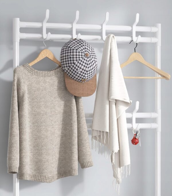 - – stojalo za čevlje je funkcionalno in izjemno prostorno – vanj lahko spravite do 20 parov čevljev, hkrati pa v stanovanju zavzame malo prostora. Poleg tega ima obešalnike za obešanje oblačil.