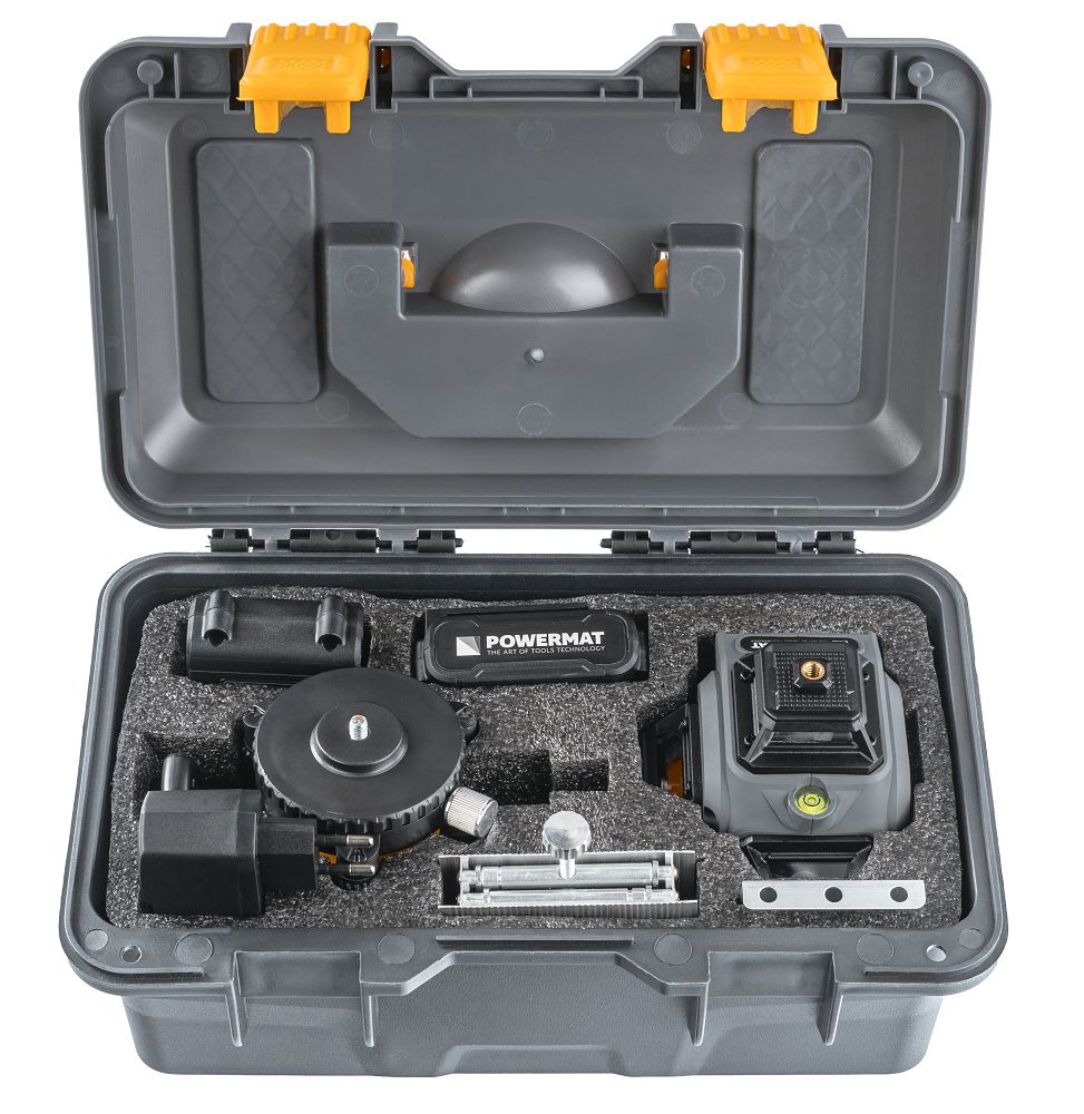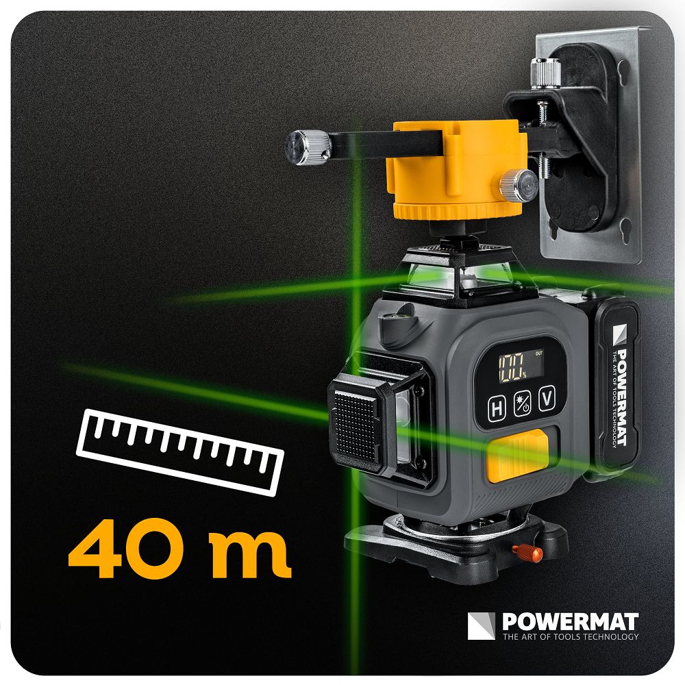 Križni laser, 4D, 360° | PM-PLK-4DM3 je zasnovan za natančno označevanje vodoravnih in navpičnih linij pri gradbenih in montažnih delih. Laser ustvari 16 linij, ki pokrivajo celoten 360° kot, kar vam omogoča preverjanje vodoravne in navpične ravni po celotnem prostoru. Naprave ni treba premikati, saj linije pokrivajo stene, strop in tla. Pri nameščanju svetilk, ploščic, konstrukcij in zaključnih elementov boste dobili dosledno referenčno točko.