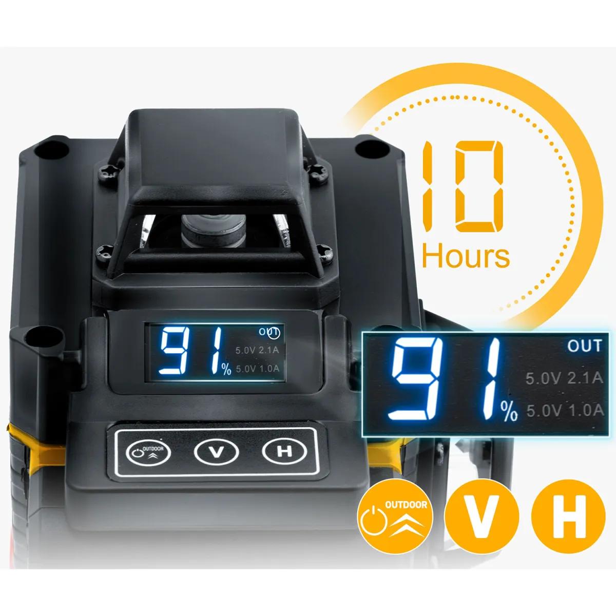 Zahvaljujoč funkciji samoniveliranja lahko laser samodejno nivelira znotraj ± 4 stopinj, kar močno olajša delo brez potrebe po ročnem nastavljanju. Ta model ustvari do 16 laserskih linij, ki zagotavljajo visoko natančnost pri gradnji, vgradnji omar, ploščic, mavčnih plošč ali vgradnji vodovodne ali električne napeljave.