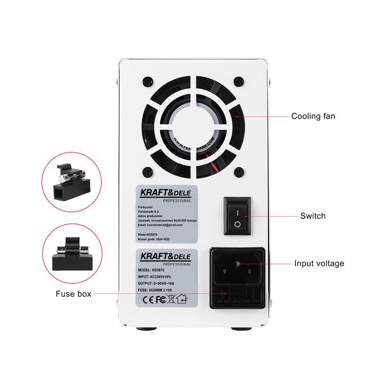 Laboratorijski napajalnik | KD5870 je sodoben, nastavljiv laboratorijski napajalnik, zasnovan za precizno servisiranje, delavnico in laboratorijsko delo. Naprava ponuja širok razpon napetosti in izhodnega toka ter visoko natančnost in stabilnost delovanja. Ta izdelek je odlična izbira za elektronske inženirje, hobiste in strokovnjake, ki potrebujejo stabilen in varen vir napajanja z visoko natančnostjo.