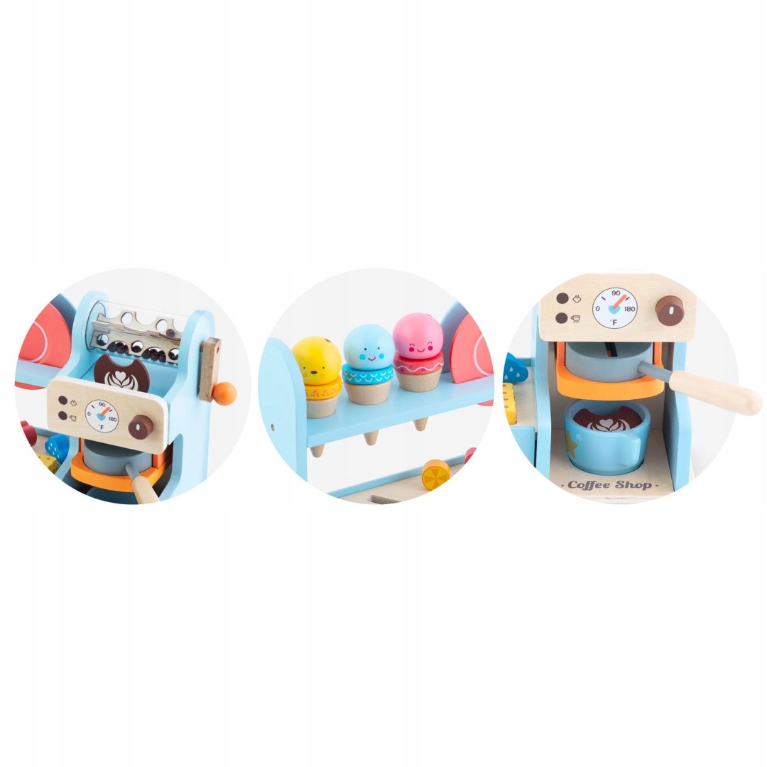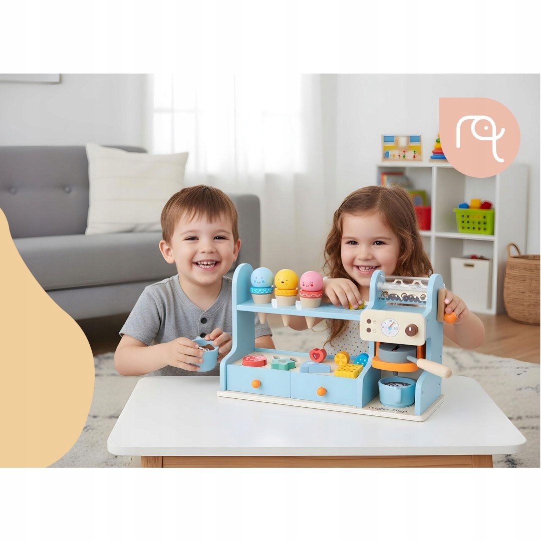 Bogati dodatki podpirajo ustvarjalno igro, razvoj fine motorike, socialnih veščin in komunikacije med otroki. Kavarna ponuja prostor za dolge ure zabave, med katerimi se otroci naravno učijo osnovnih načel sodelovanja, storitev za stranke in igranja vlog. Zaradi svoje univerzalne zasnove je primerna tako za otroško sobo kot za igralni kotiček in bo navdušila otroke različnih starosti.