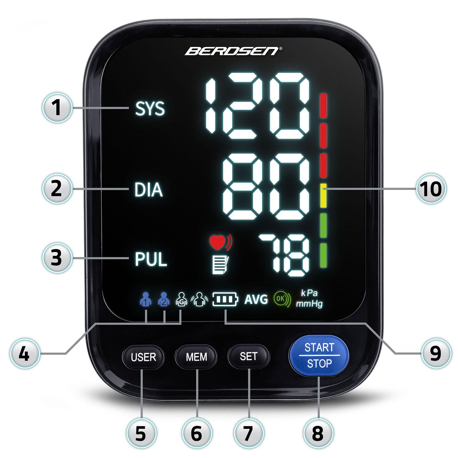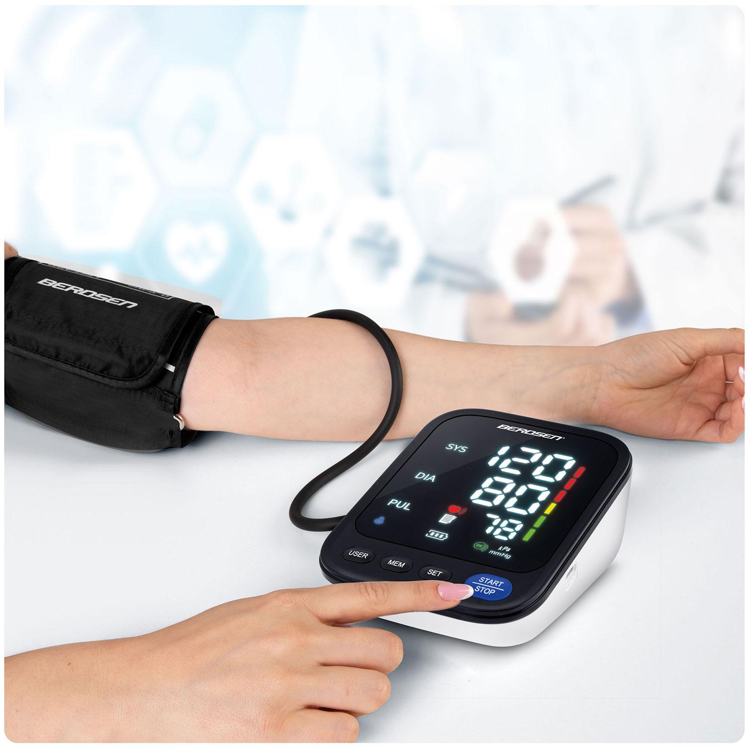 Merilnik krvnega tlaka BD-122, črno-bel | Berdsen je idealna naprava za redno merjenje krvnega tlaka iz udobja vašega doma. Zahvaljujoč popolnoma avtomatskemu delovanju in preprostemu upravljanju z enim gumbom lahko meritev opravi tudi starejši ali oseba brez predhodnih izkušenj. Naprava je primerna za vse starostne skupine.