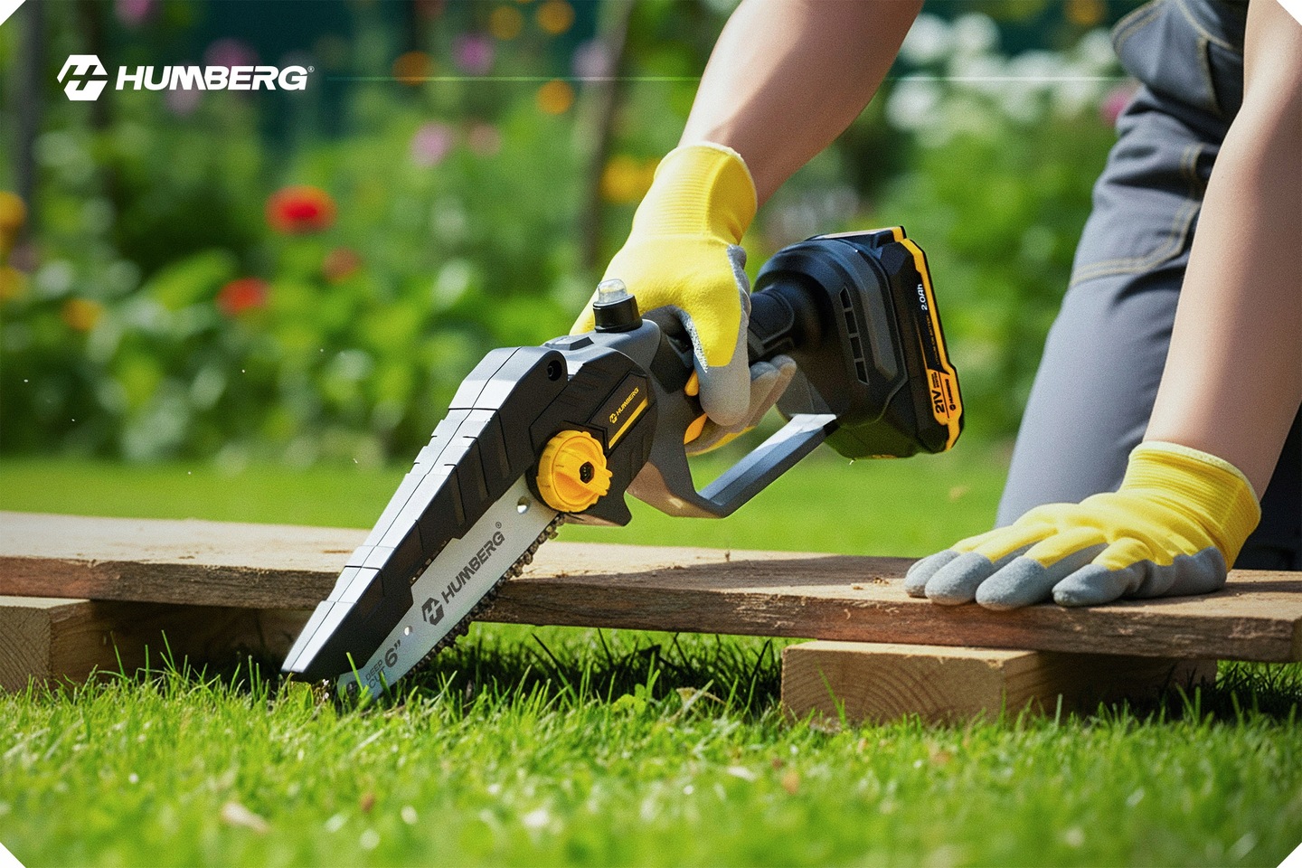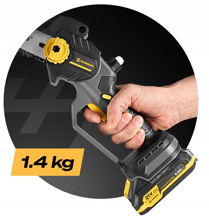 Mini motorna žaga na baterije HM-421, 420W | Humberg je praktično in mobilno orodje za enostavno rezanje lesa in vzdrževanje vrta brez kablov. Zaradi lahke in uravnotežene zasnove jo je udobno držati in upravljati tudi med daljšim delom, zaradi česar je idealna rešitev za domačo uporabo brez potrebe po dostopu do električne vtičnice. Pogon na baterije zagotavlja mobilnost in prilagodljivost, varnostne funkcije pa povečujejo varnost pri delu.