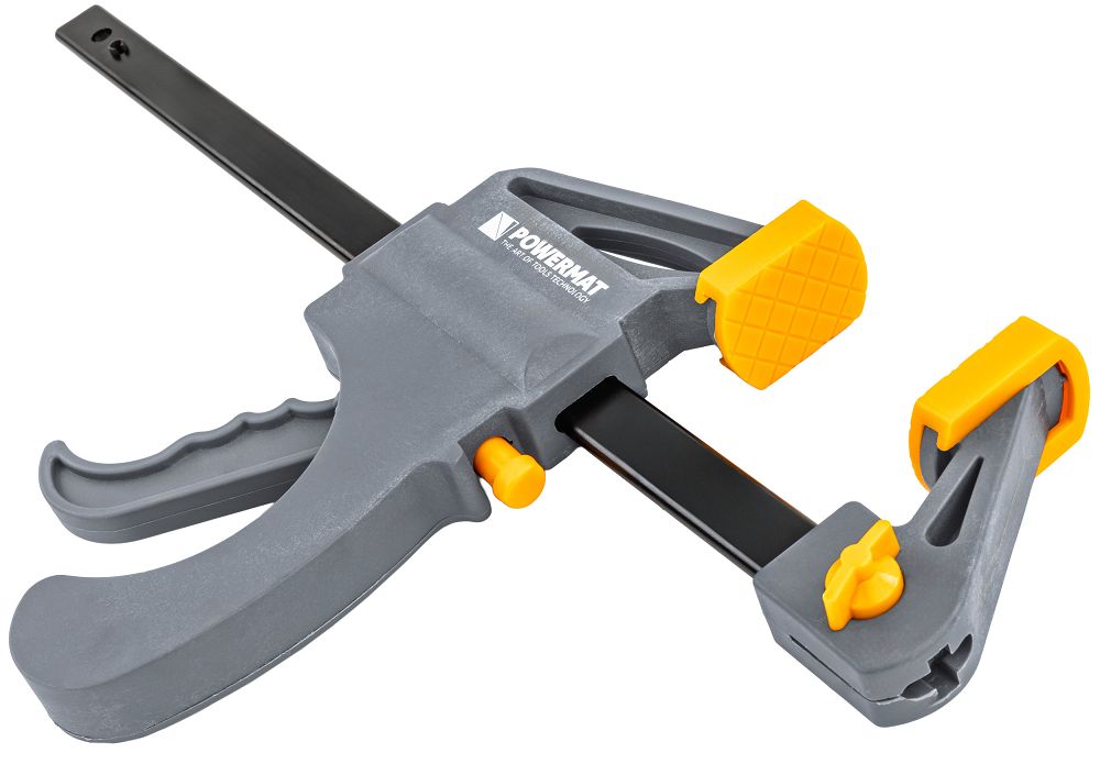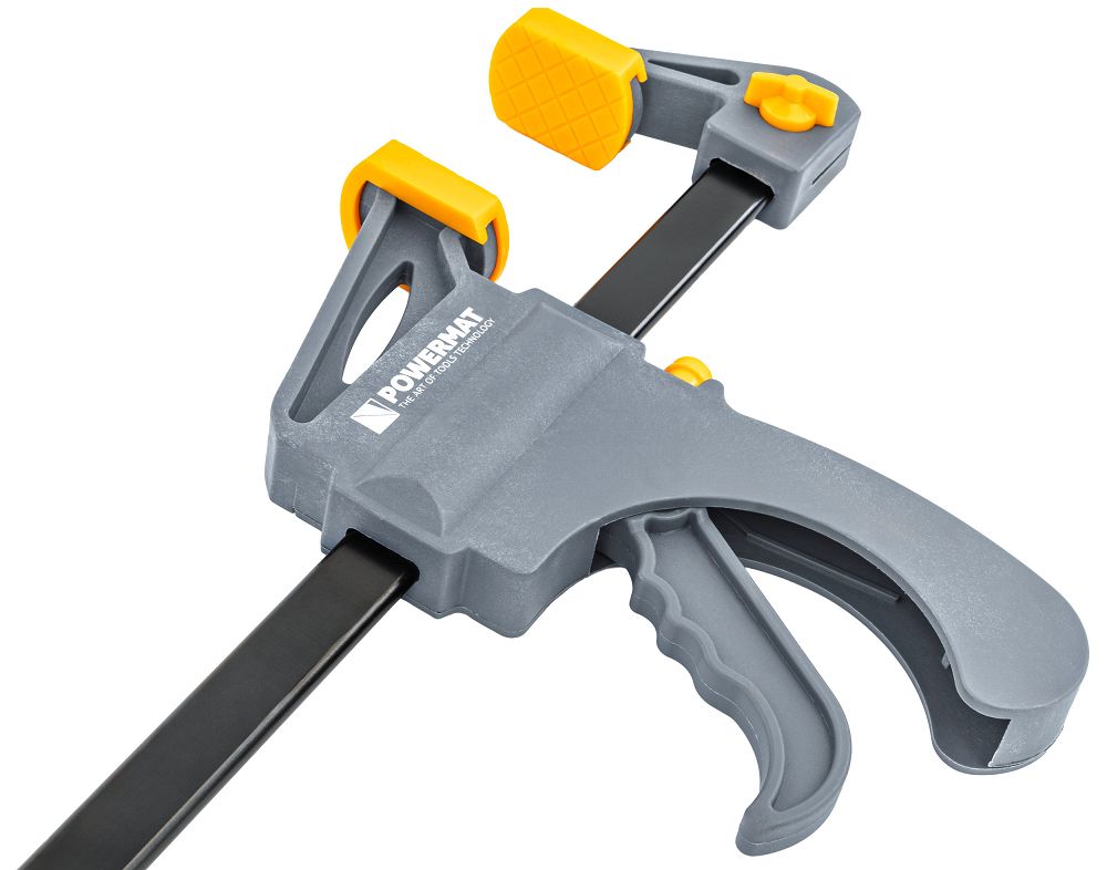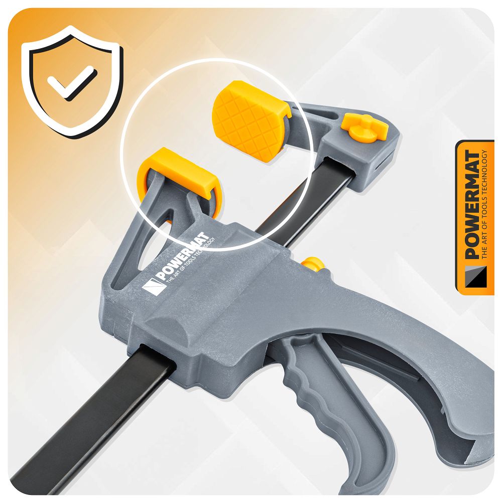 Čeljusti so opremljene z mehkimi zaščitnimi prevlekami, ki preprečujejo praskanje in deformacijo površine. Zaradi tega je orodje varno za lesene, kovinske in površinske elemente. Visokokakovostni materiali, uporabljeni v vodilni tirnici in mehanizmu, zagotavljajo vzdržljivost in odpornost na intenzivno uporabo. Zasnova vpenjala ostane stabilna tudi pod visokim pritiskom.