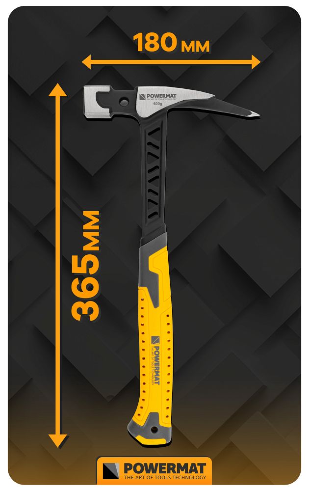 Mizarsko kladivo, 920 g | PM-MLT-600-920T je robustno orodje, zasnovano za mizarska dela, kot so vstavljanje in izvlačenje žebljev, lomljenje ali oblikovanje lesa. Kladivo je izdelano iz enega kosa kovanega in kaljenega jekla, kar zagotavlja maksimalno vzdržljivost in odpornost na intenzivno uporabo. Kladivo je idealno za zabijanje in odstranjevanje žebljev, rušenje ometa, lomljenje gradbenih materialov in drobljenje opeke.