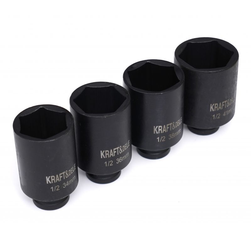 Nastavki, 6-kraki, 1/2″, 4 kosi | KD11753 so profesionalni komplet iz Cr-Mo jekla, idealen za profesionalno in delavniško delo. Komplet lahko uporabljate z električnim, akumulatorskim ali pnevmatskim orodjem z udarnim pogonom. Dobro bo služil profesionalcem in domačim mojstrom.