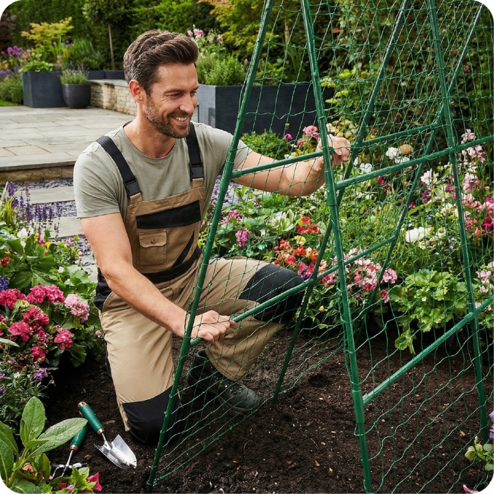 Vrtna opora zagotavlja trdno oporo za poganjke rastlin, kar jim omogoča rast v boljših pogojih. Njena uporaba zagotavlja, da se paradižniki, kumare in druge vzpenjavke ne dotikajo neposredno tal, ostanejo čistejše, njihova nega in gojenje pa sta bistveno poenostavljena.