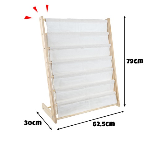 Otroška knjižna omara, 79×62,5x30cm | Kruzzel je lahka, stabilna in varna knjižna omara, ki bo pomagala ohranjati knjige ali pobarvanke urejene. Njena višina, prilagojena otrokom, olajša samostojen dostop in spodbuja branje. Lesena konstrukcija s policami iz blaga združuje estetiko s funkcionalnostjo ter se dopolnjuje z moderno in klasično notranjostjo.