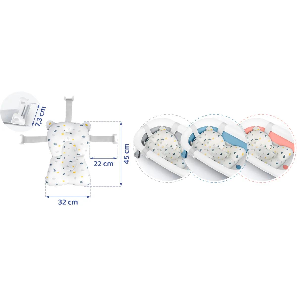 Otroška kopalna blazina | Ricokids zahvaljujoč nastavljivim trakovom in mehkemu materialu zagotavlja oporo in varen oprijem med kopanjem dojenčka. Je udoben dodatek, ki novorojenčku nudi oporo med kopanjem, njena površina pa je izdelana iz hitro sušečega materiala, ki zagotavlja udobje in higieno. Blazina je opremljena z nastavljivimi trakovi, ki omogočajo trdno in varno pritrditev na večino kopalnih kadi (vključno z blagovno znamko Ricokids), njena montaža in demontaža pa sta preprosti in intuitivni.