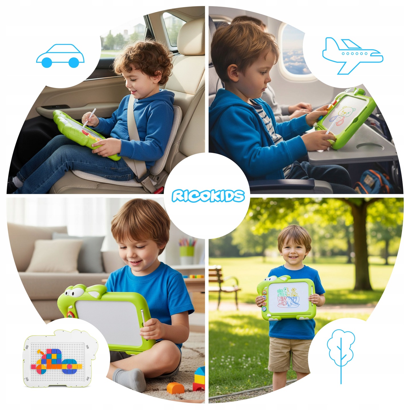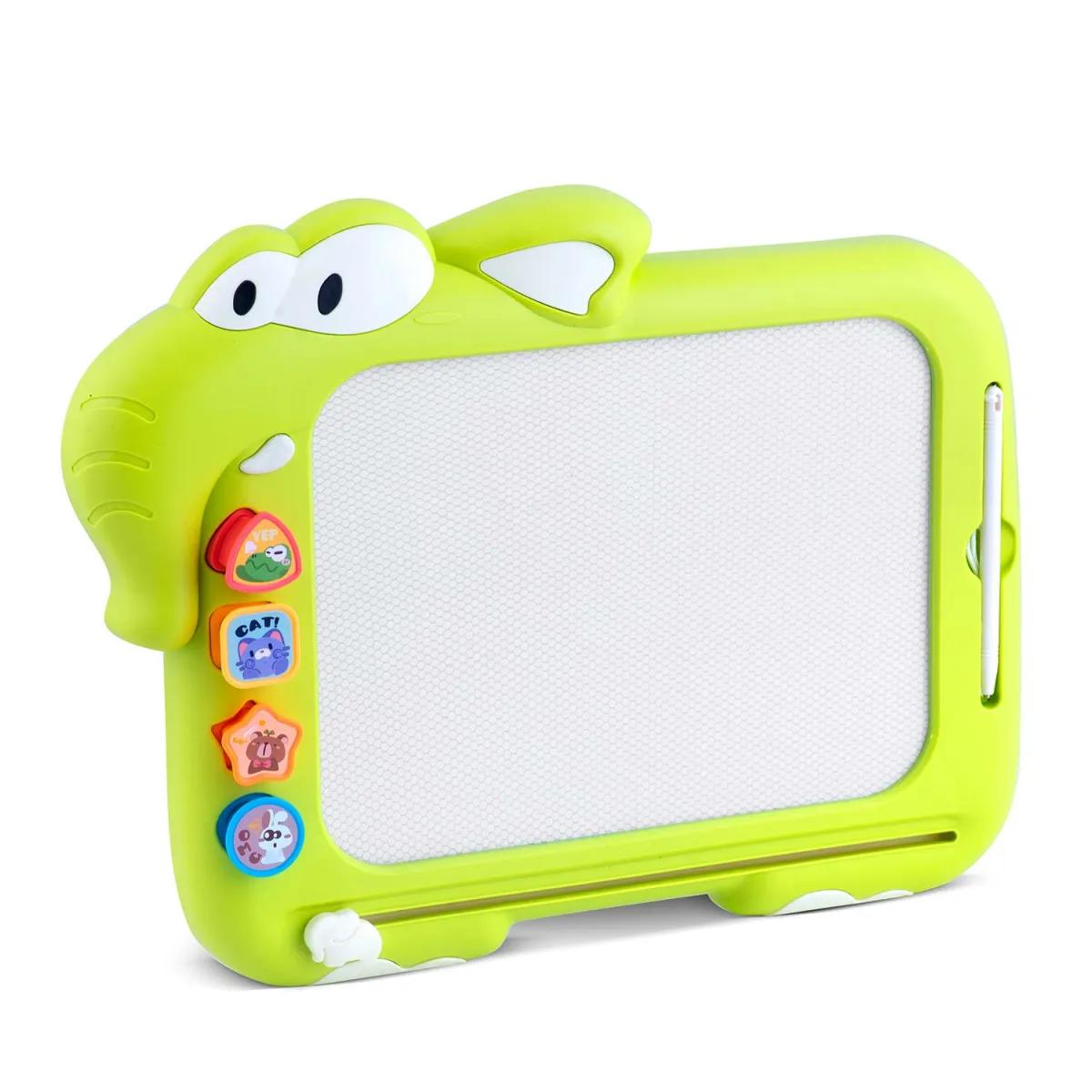 Otroška magnetna risalna tabla RK-823, zelena | Ricokids otrokom ponuja ustvarjalno igro, povezano s prostorom, kjer lahko sestavljajo tudi tangram oblike. Gre za univerzalno ustvarjalno igračo za otroke, ki združuje funkcije magnetnega žiga in tangram sestavljanke. Omogoča risanje s peresom in magnetnimi žigi, medtem ko se slika z enim gibom enostavno “izbriše”.