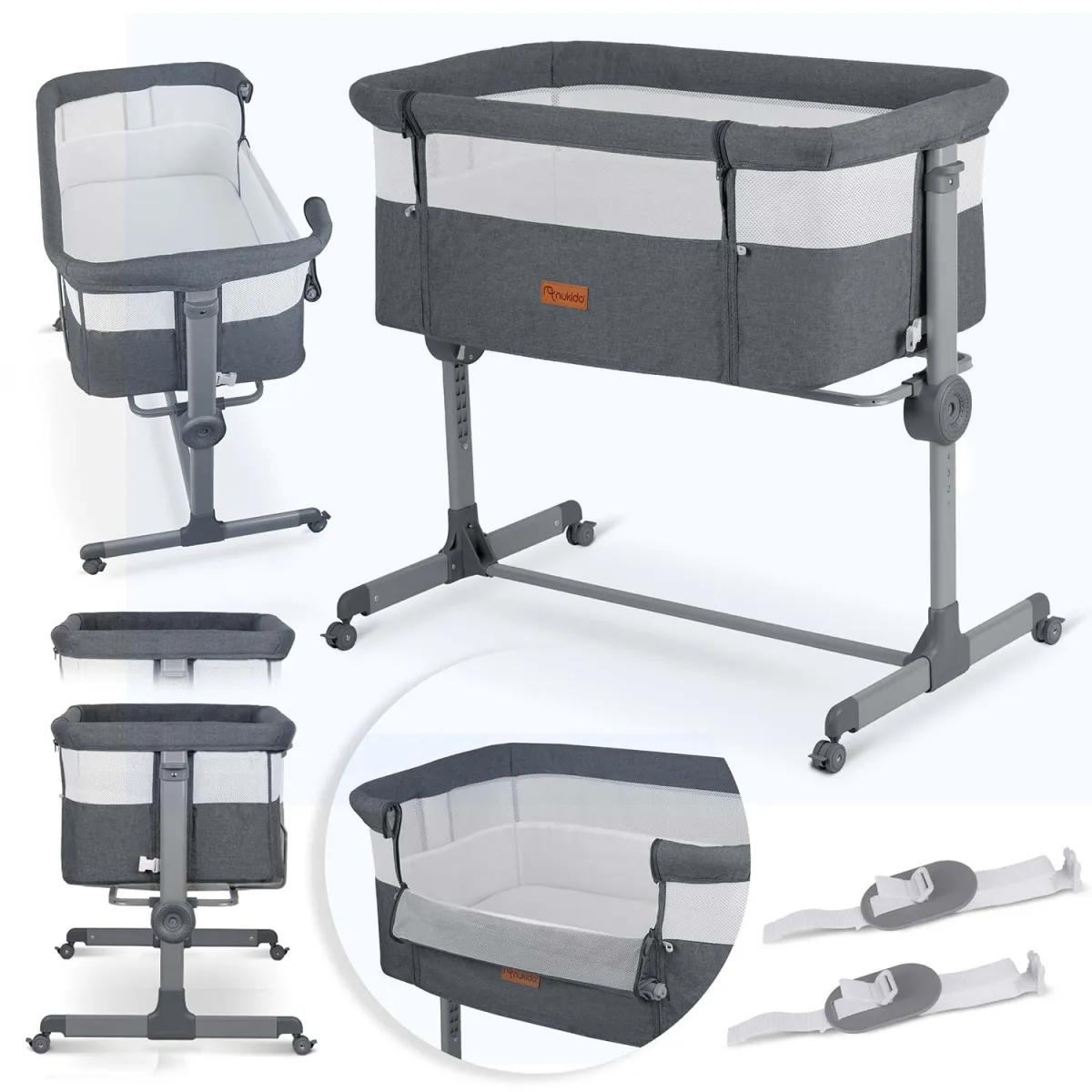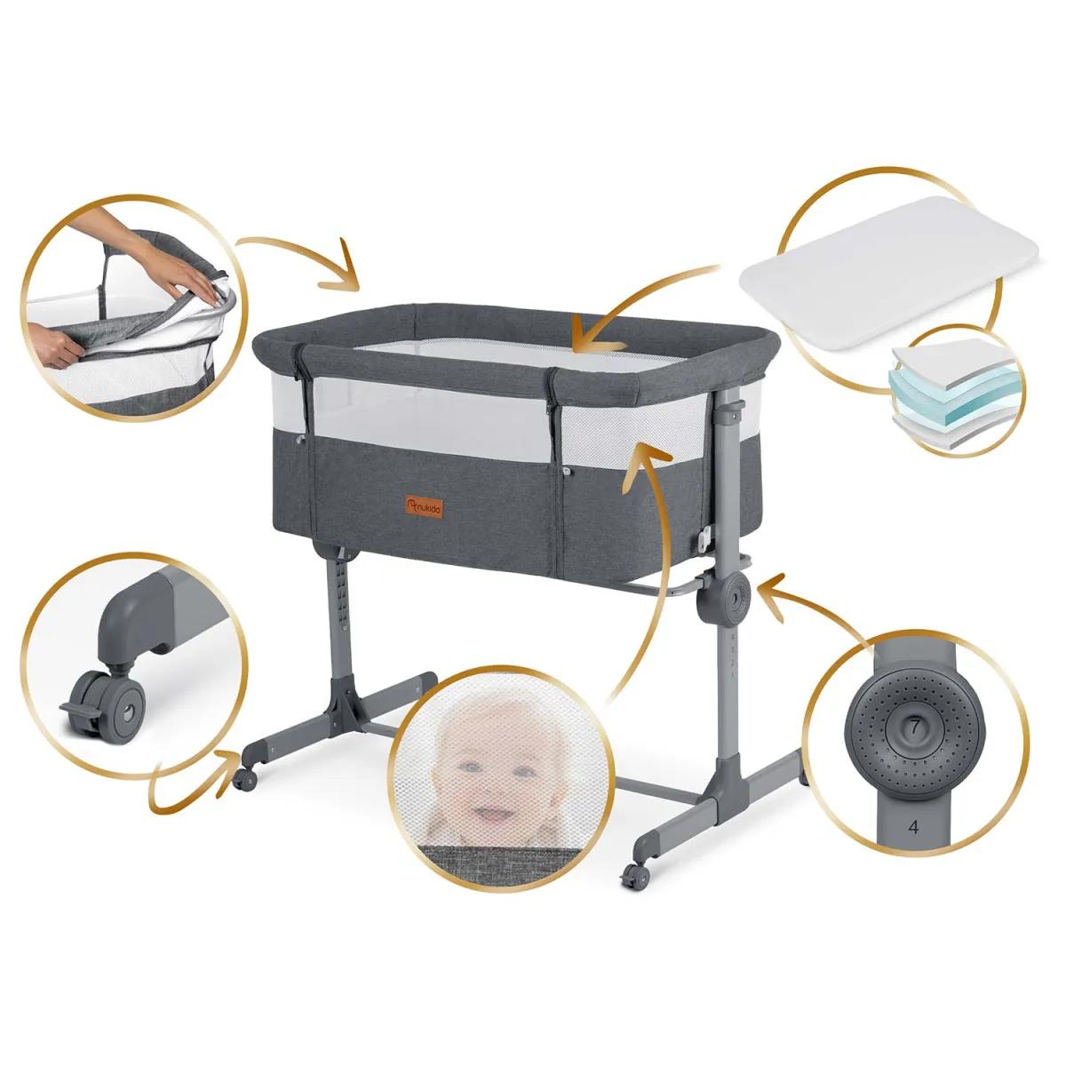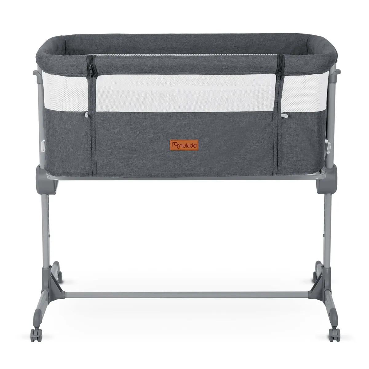 Otroška potovalna posteljica NK-243, zložljiva, temno siva | Nukido z izvlečnim delom ponuja praktično rešitev za starše in dojenčke na poti. Izdelana je tako, da je lahka in zložljiva, kar omogoča enostavno rokovanje in prenašanje med potovanjem. Višino je mogoče nastaviti v 7 stopnjah, neodvisno z vsake strani, kar pomaga prilagoditi posteljico višini vaše vzmetnice.