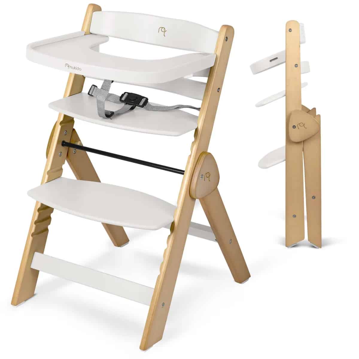 Otroški jedilni stol Timo 2-v-1, bel | Nukido je stabilen in varen stolček za hranjenje, ki podpira udobno in samostojno sedenje za mizo. Zahvaljujoč posebnemu kompletu varnostnih pasov in udobni blazini postane varen in udoben prvi stolček za vašega otroka. Idealen za prve obroke in skupne trenutke za mizo. Ko vaš otrok odraste, preprosto odstranite pladenj in prilagodite višino sedeža in naslonjala za noge.