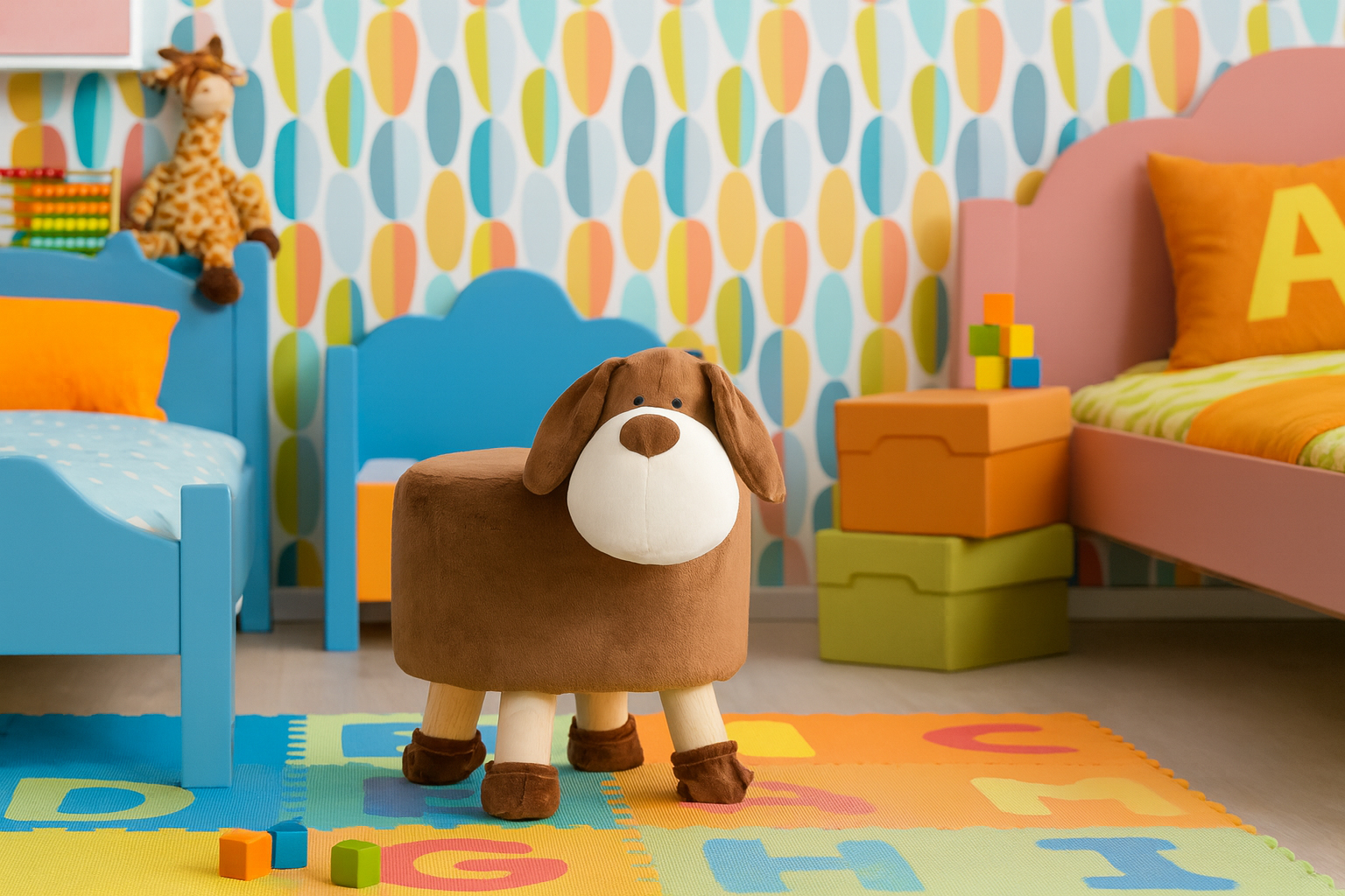 Otroški stolček, 28x25cm | pes je originalen dodatek, ki ponuja praktičen prostor za sedenje ali počitek, idealen za otroško sobo. Stolček je izdelan iz mehkih materialov, ki omogočajo udobno sedenje, notranje polnilo pa zagotavlja stabilno oporo. Zahvaljujoč kompaktnim dimenzijam se udobno prilega tudi manjšim prostorom, hkrati pa daje prostoru igriv in izviren pridih. Oblika, navdihnjena z žirafo, bo všeč tako otrokom kot odraslim.