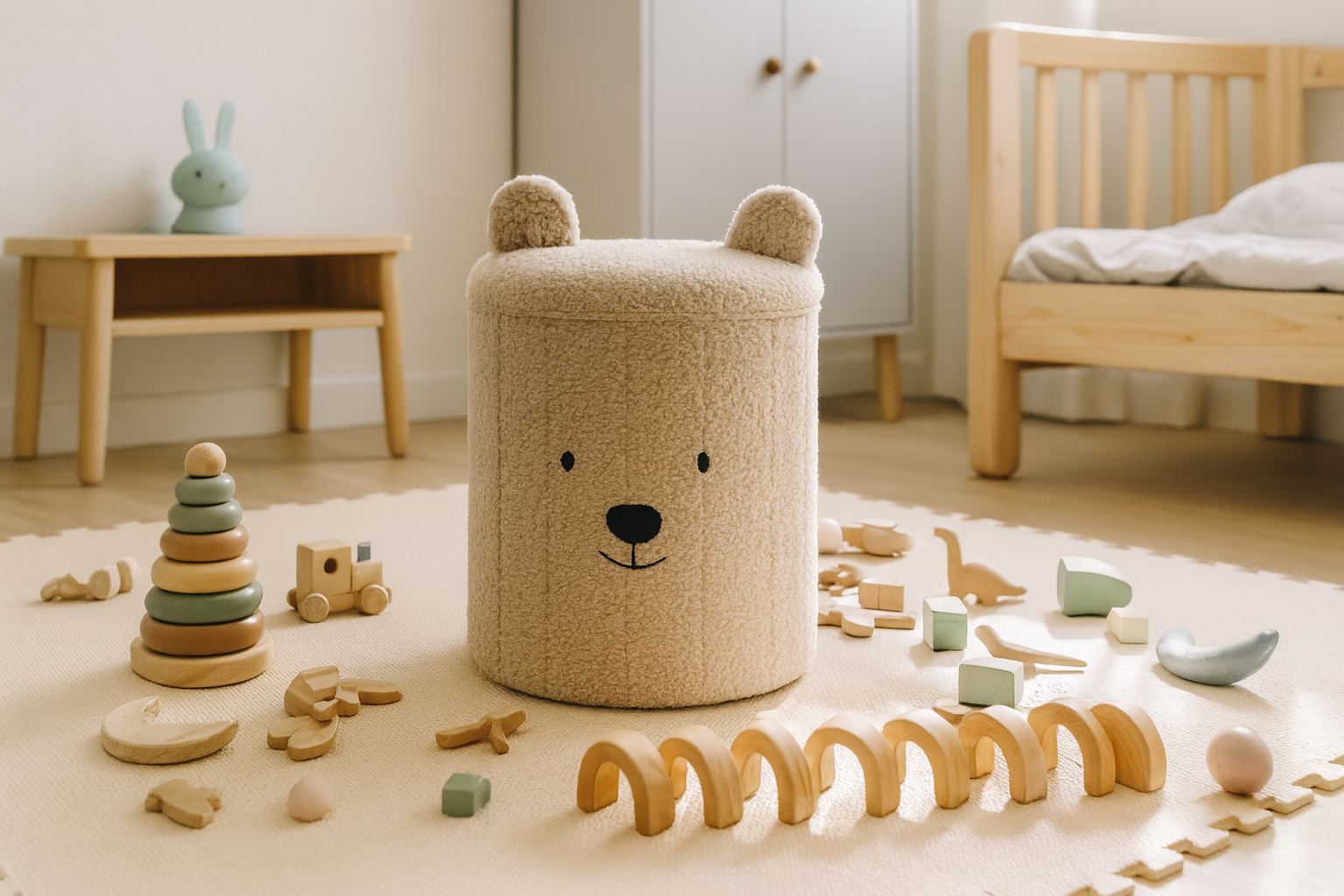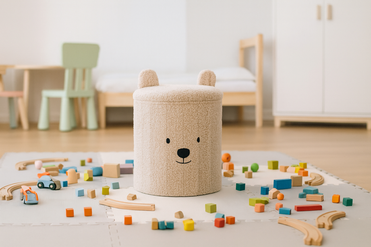 Otroški stolček s prostorom za shranjevanje, 28x28x34cm | bež združuje funkcijo udobnega sedeža in prostora za shranjevanje, zaradi česar je primeren za vsak prostor. Zaradi kompaktnih dimenzij 28 × 28 × 34 cm je primeren za dnevno sobo, spalnico, hodnik ali otroško sobo, kjer ne zavzame veliko prostora.
