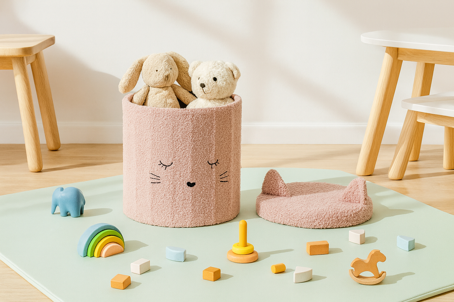 Otroški stolček s prostorom za shranjevanje, 28x28x34cm | roza združuje funkcijo udobnega sedeža in prostora za shranjevanje, zaradi česar je primeren za vsak prostor. Zaradi kompaktnih dimenzij 28 × 28 × 34 cm je primeren za dnevno sobo, spalnico, hodnik ali otroško sobo, kjer ne zavzame veliko prostora.