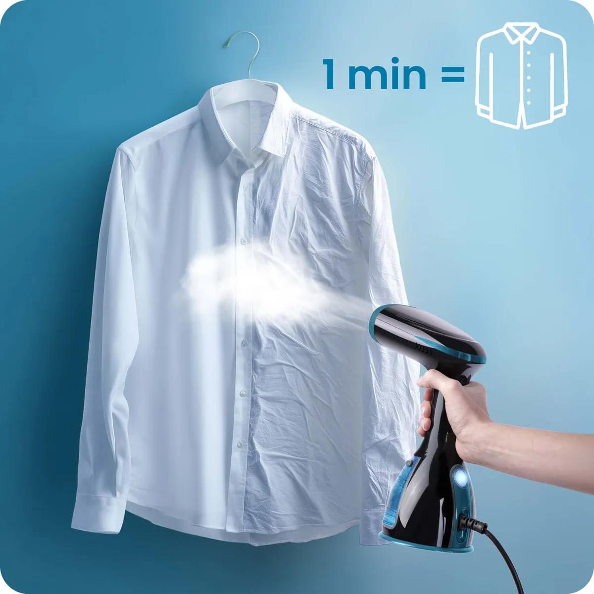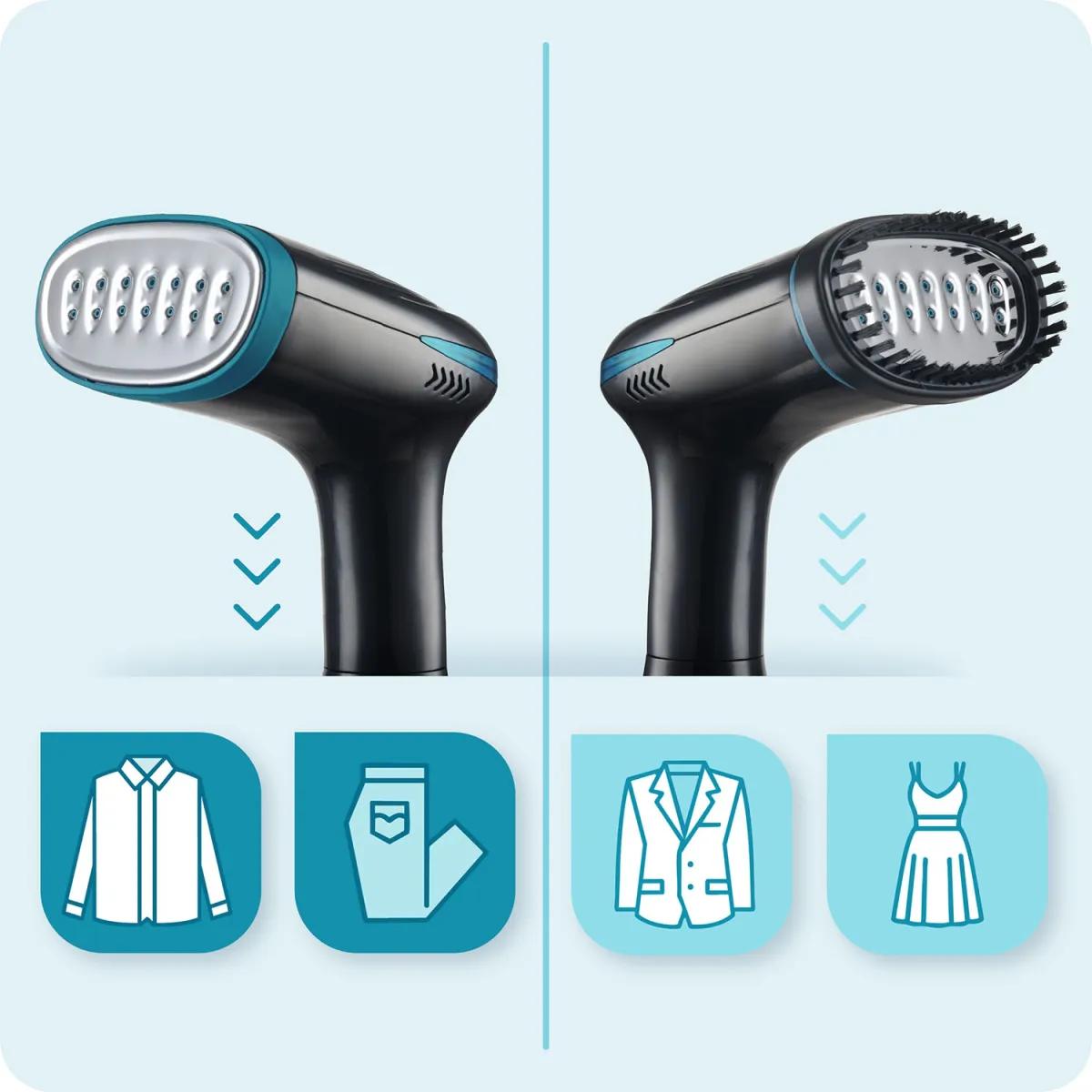 Paket vsebuje nastavek s krtačo za odstranjevanje prahu in vlaken ter lijak za enostavno prelivanje vode. Ta parnik je idealen tako za domačo kot za potovalno uporabo, saj njegova kompaktna zasnova in enakomerna porazdelitev pare zagotavljata profesionalne rezultate, osvežita tkanine ter odpravljata bakterije in neprijetne vonjave.
