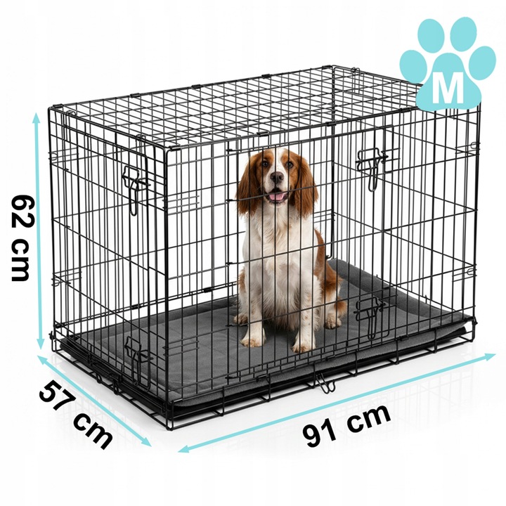 Pasja kletka z zaščitno podlogo PH-201, M, 91x57x62cm | Pethaus