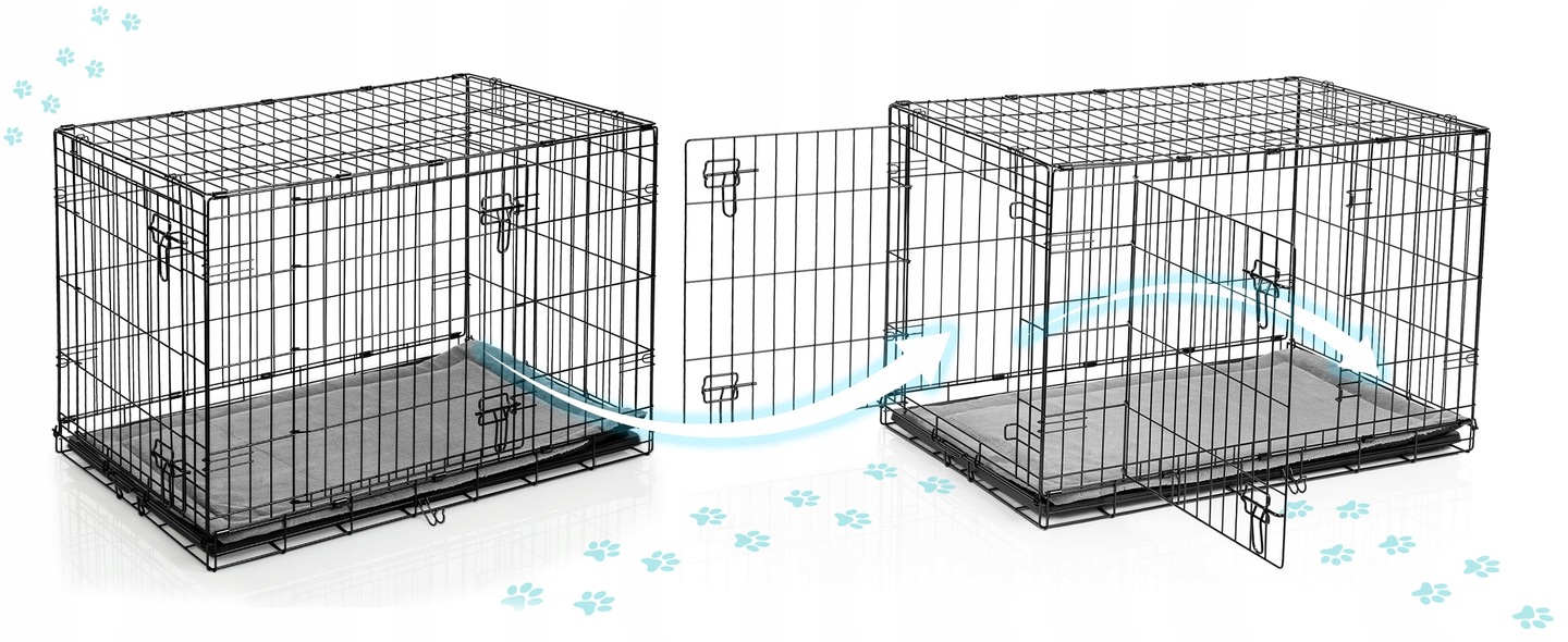 Zahvaljujoč kovinski konstrukciji z masivnimi palicami je odporna na poškodbe in zagotavlja dobro kroženje zraka, kar poveča udobje vašega psa. Kletka se enostavno odpre z vrati s ključavnico, kar olajša rokovanje in dostop do živali, hkrati pa zagotavlja njeno varno držanje brez neželenega pobega. Kletka ima zanesljiv mehanizem za zlaganje in razstavljanje. V nekaj gibih se spremeni v raven, lahek in praktičen kovček. Z lahkoto jo lahko nosite, shranite ali vzamete v avto.