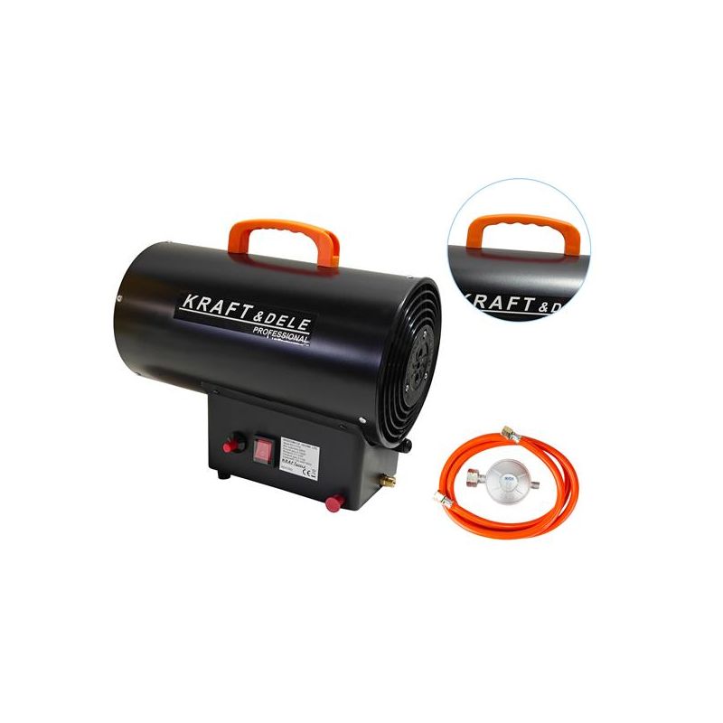 Plinski grelec, 20 kW | KD11703 je kompaktna in zmogljiva enota, idealna za hitro in učinkovito ogrevanje industrijskih in poslovnih prostorov. Je varna in trpežna naprava, ki je enostavna za uporabo. Preprosto priključite plinsko jeklenko in ventilator je pripravljen za uporabo. Naprava, ki jo poganja propan-butan plin, proizvaja čist in topel zrak. Proces zgorevanja poteka v odprti zgorevalni komori, zrak, ki ga vsesava aluminijasti ventilator, se segreje in nato izpiha iz grelnika. Za pravilno zgorevanje ne potrebuje dimnika, temveč le dovod zraka.