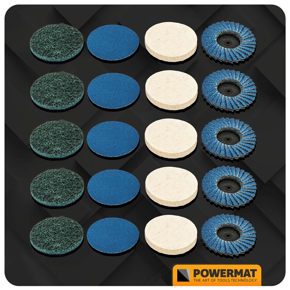 Pnevmatski brusilnik z dodatki, 6,3 bara | PM-SPMP-90T je kompaktno in zanesljivo orodje za natančno brušenje in poliranje različnih površin v delavnici in doma. Brusilnik deluje z različnimi diski, blazinicami in brusilnimi kamni, kar omogoča brušenje, čiščenje, poliranje, ostrenje in vzdrževanje pnevmatskega brusilnika. Zahvaljujoč zamenljivim konicam je univerzalen in primeren za številne aplikacije na področju kovin, lesa ali plastike.