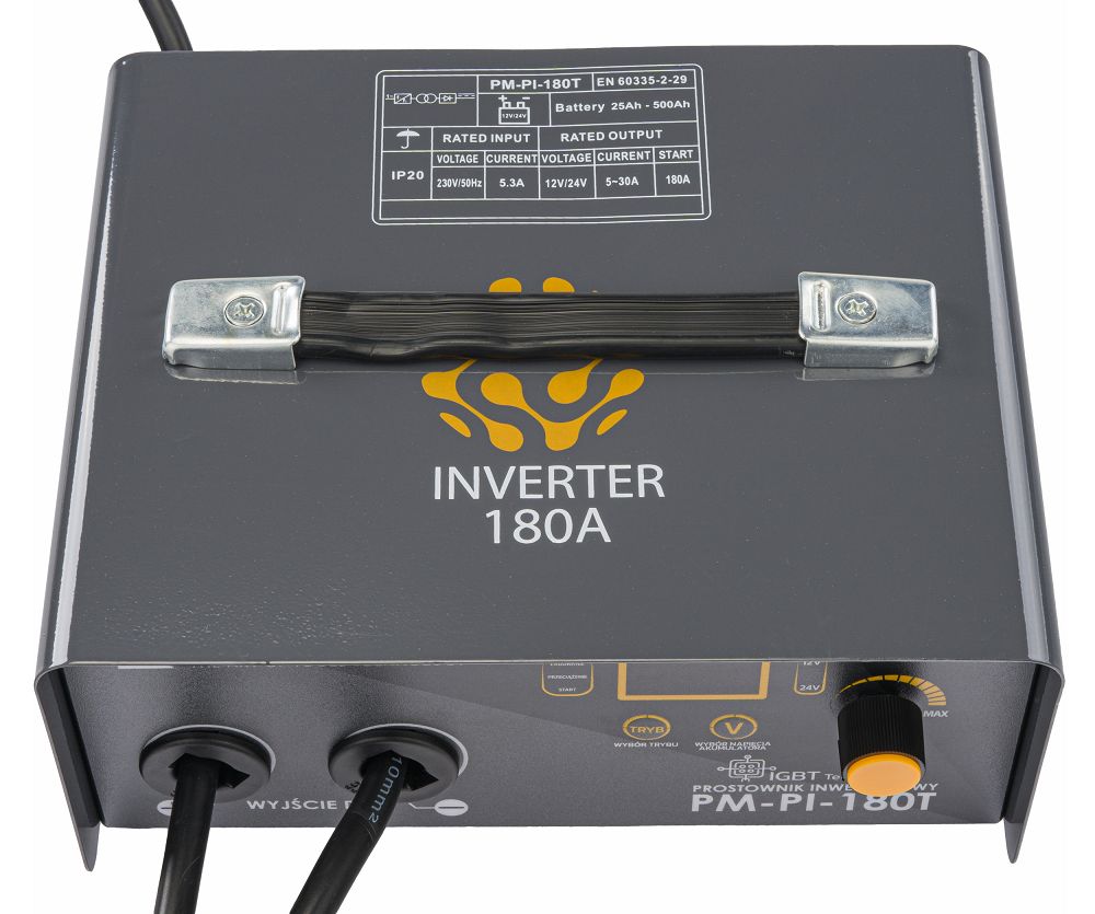 Polnilnik avtomobilskih akumulatorjev z zaganjalnikom, 12/24V, 180A | PM-PI-180T je naprava, ki omogoča polnjenje različnih vrst svinčenih akumulatorjev. To so lahko WET akumulatorji s tekočim elektrolitom, GEL akumulatorji z gel elektrolitom ali AGM akumulatorji z absorbirajočo elektrolitno podlogo.