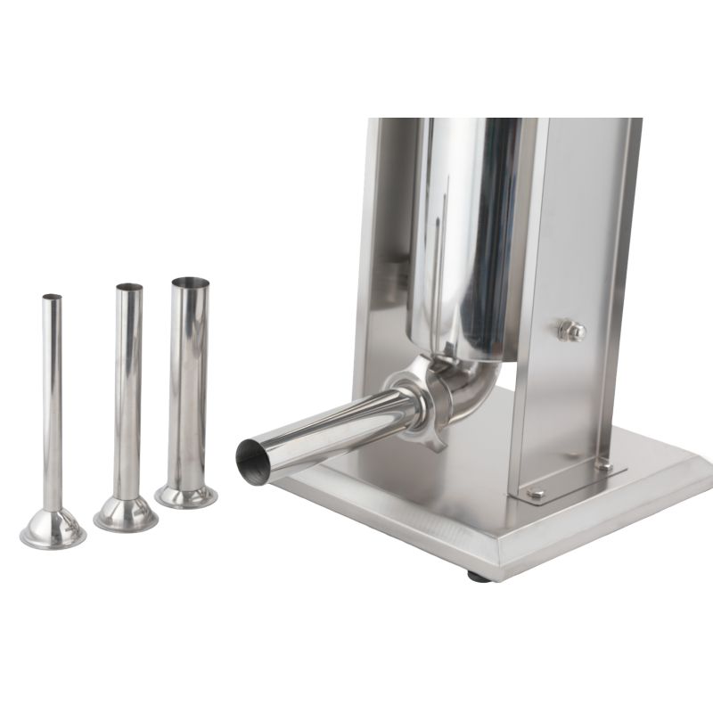 Polnilnik klobas, 5 kg | KD4132 je profesionalna in funkcionalna naprava, zasnovana za pripravo domačih in komercialnih mesnih izdelkov. Idealna je za mesnopredelovalne obrate, restavracije, gostinska podjetja, agroturistične kmetije, lovce, gospodinjstva in kadilnice. Visokokakovostno nerjaveče jeklo s kromirano površino omogoča enostavno čiščenje in vzdrževanje naprave.